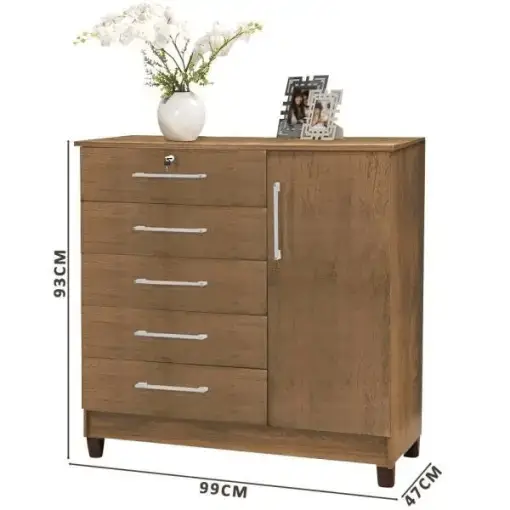 Cômoda Vitória 5 Gavetas 1 Porta Rud Rack