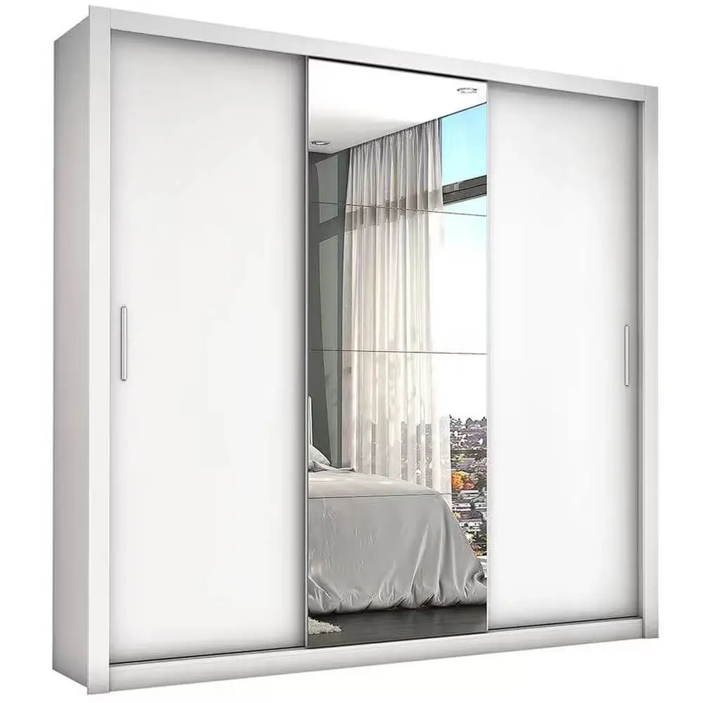 Além do mais, esse belo guarda-roupa possui portas de correr com espelho, trilhos de alumínio para melhor deslizamento das portas, gavetas com corrediças metálicas, puxadores de alumínio e várias repartições internas para alocar melhor suas roupas e pertences.