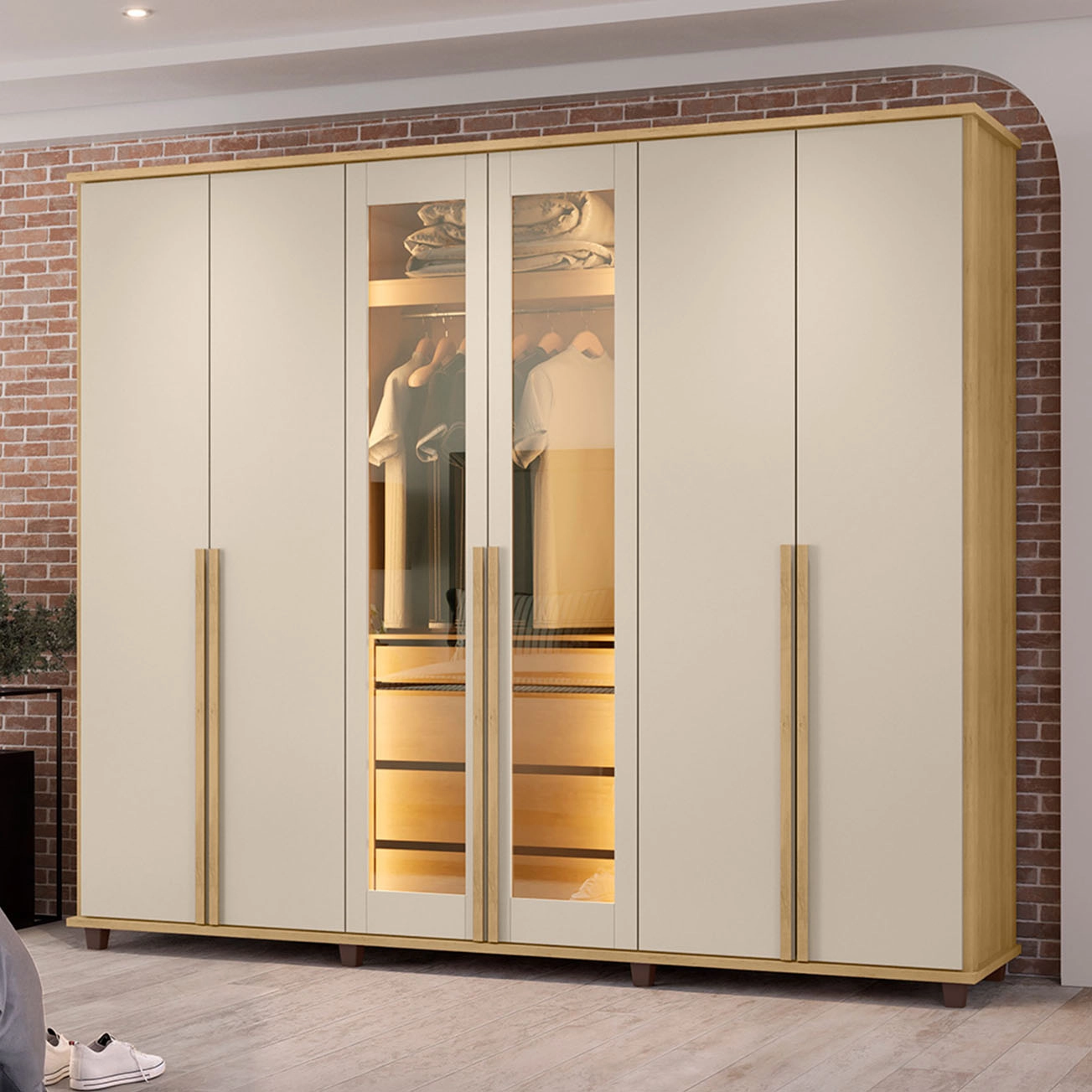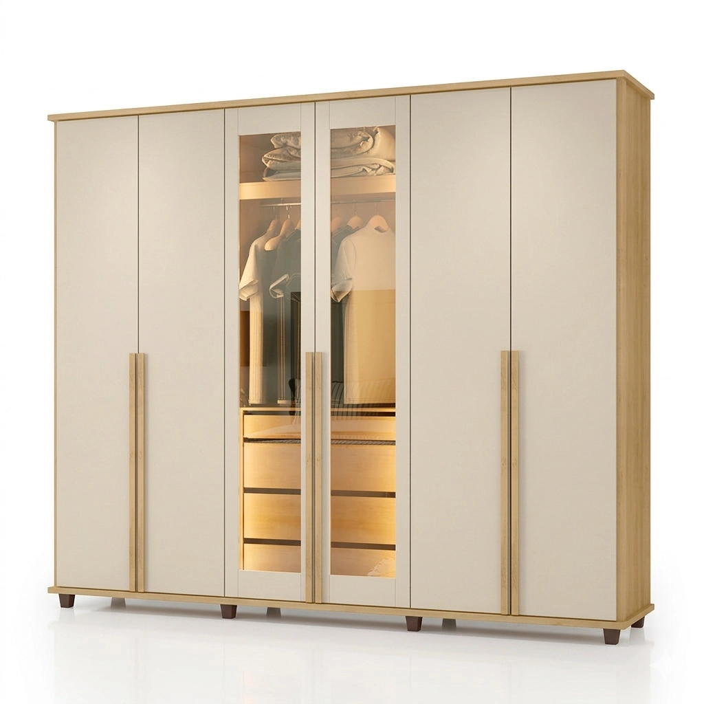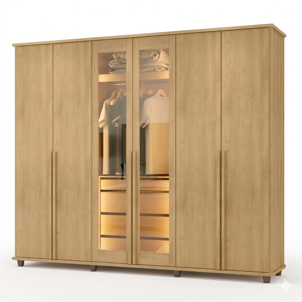 Guarda Roupa Belgica Casal Com Led 6 Portas 4 Gavetas Rv Móveis