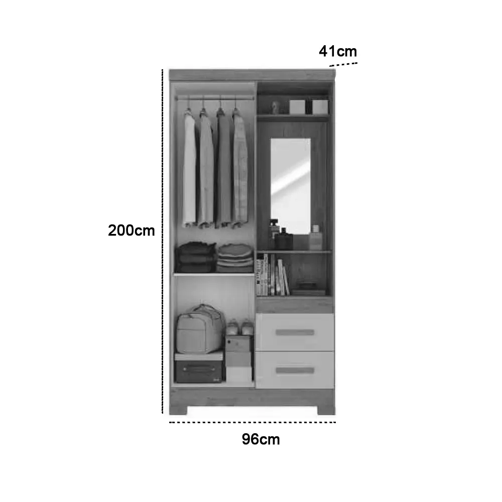 Guarda Roupa Capelinha Atualle Solteiro com Espelho 2 Portas 2 Gavetas