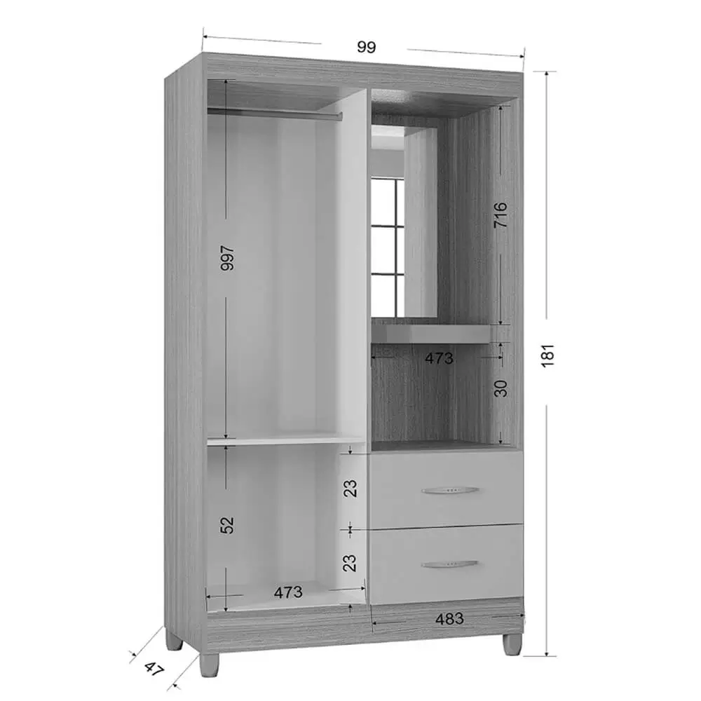 Guarda Roupa Cordoba Solteiro 2 Portas 2 Gavetas com Espelho Poquema