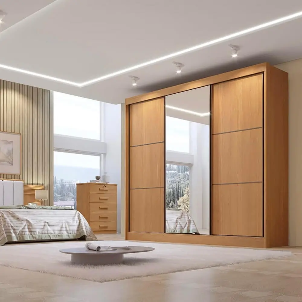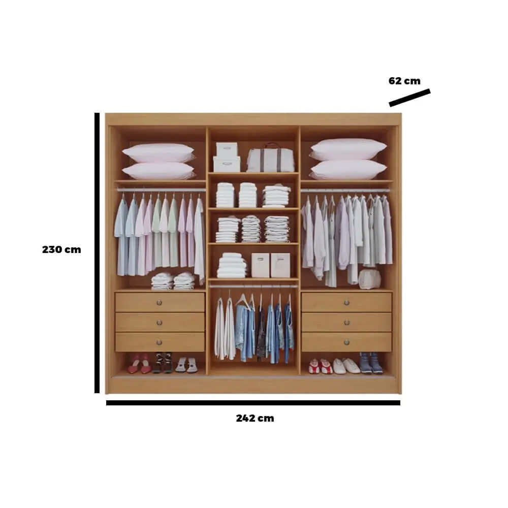 As três portas deslizantes facilitam o acesso às suas roupas, poupando espaço no quarto e garantindo praticidade no seu dia a dia. As seis gavetas oferecem ainda mais organização, permitindo que você armazene itens menores de forma conveniente.