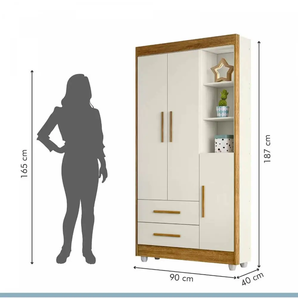 Guarda Roupa Flocos Infantil 3 Portas 2 Gavetas Tigus