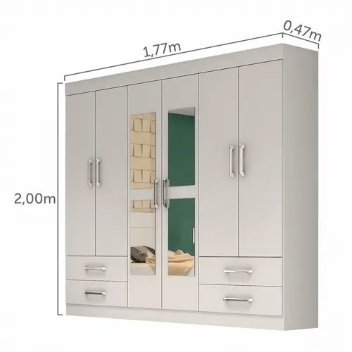 Guarda Roupa Hercules com 6 Portas 4 Gavetas e Espelho