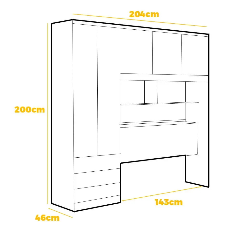 Dimensões 46,00 × 204,00 × 200,00 cm