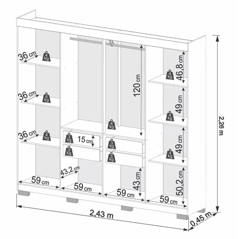 Dimensões 45,00 × 243,00 × 226,00 cm