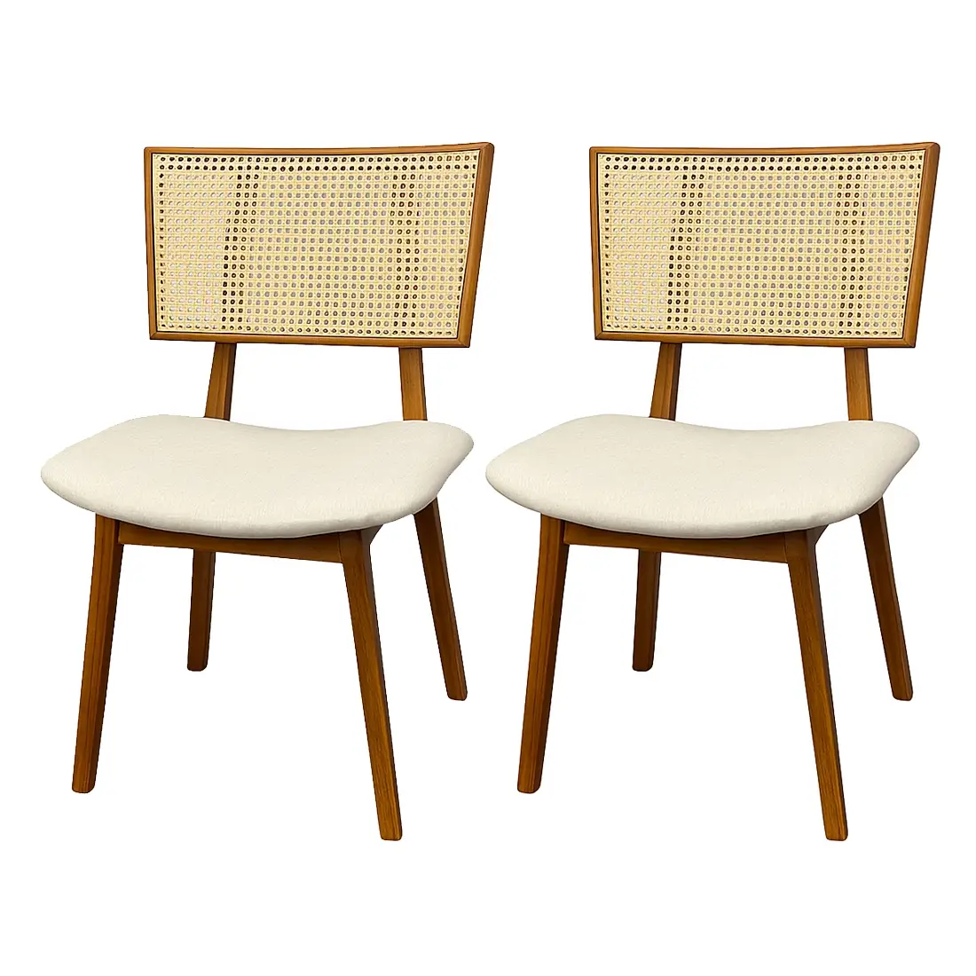 Kit 2 Cadeiras Livia Madeira Tecido Linho VA Movelaria