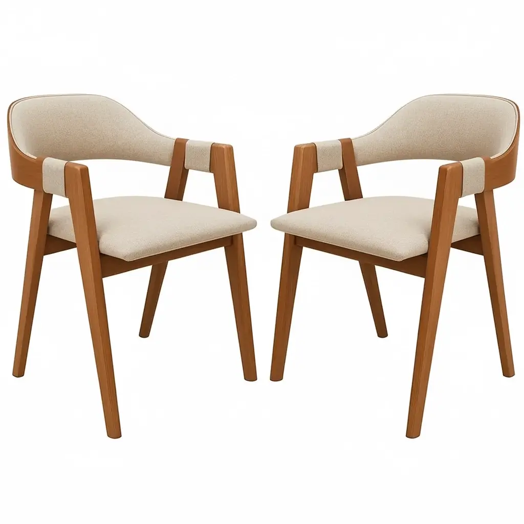 Kit 2 Cadeiras Perola em Linho Madeira Wj Decor