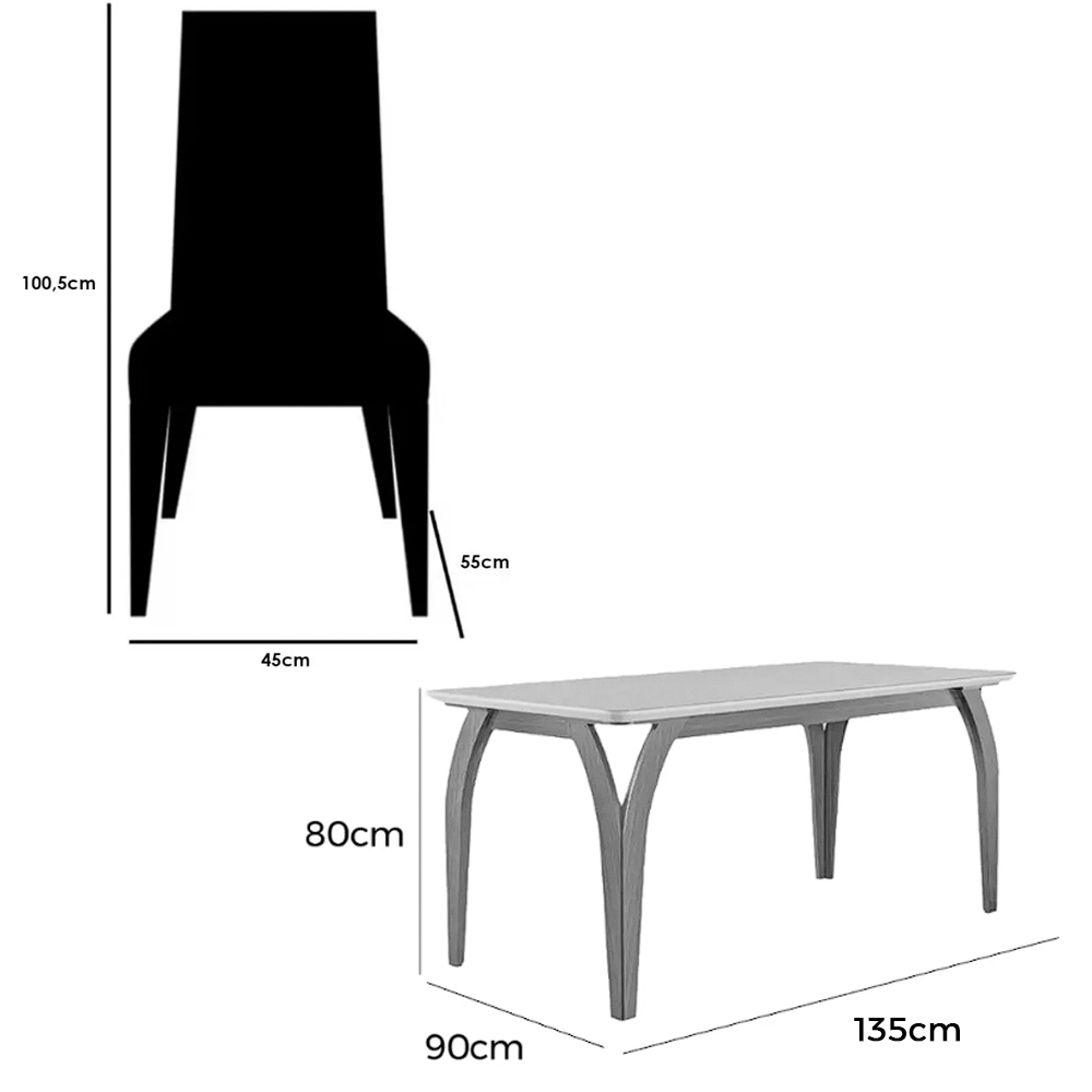 Modelo Mesa de Jantar Agata 135x90cm com Vidro e 4 Cadeiras California em Linho