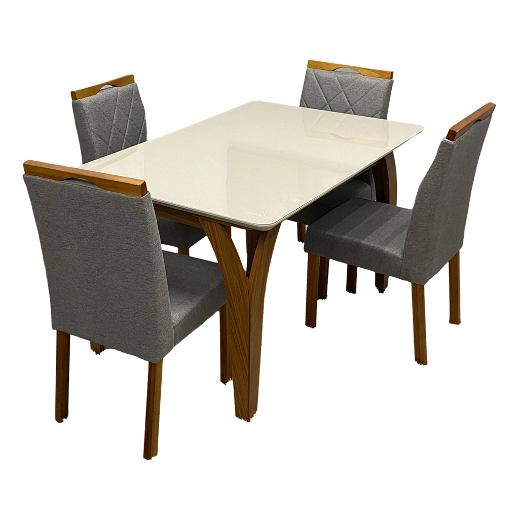 Mesa de Jantar Agata 135x90cm com Vidro e 4 Cadeiras California em Linho Estofadas Lj Móveis
