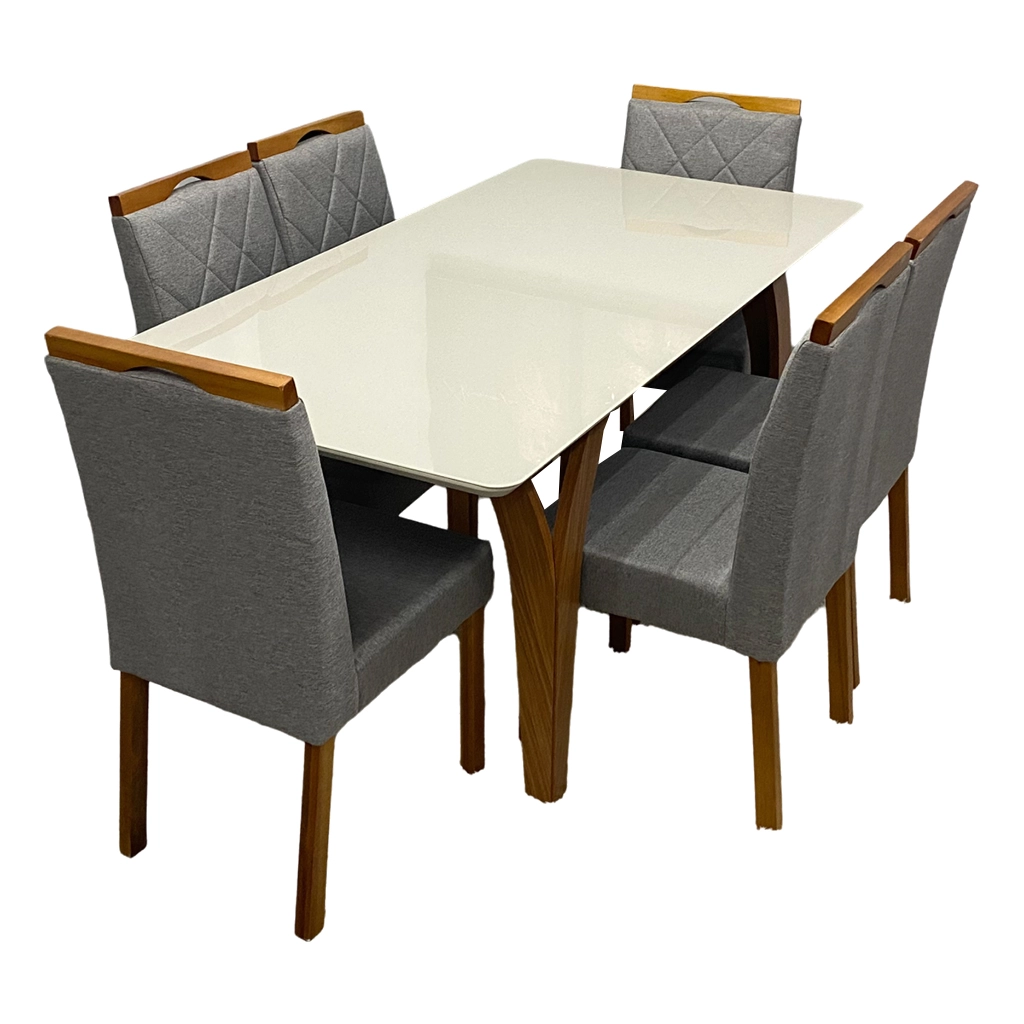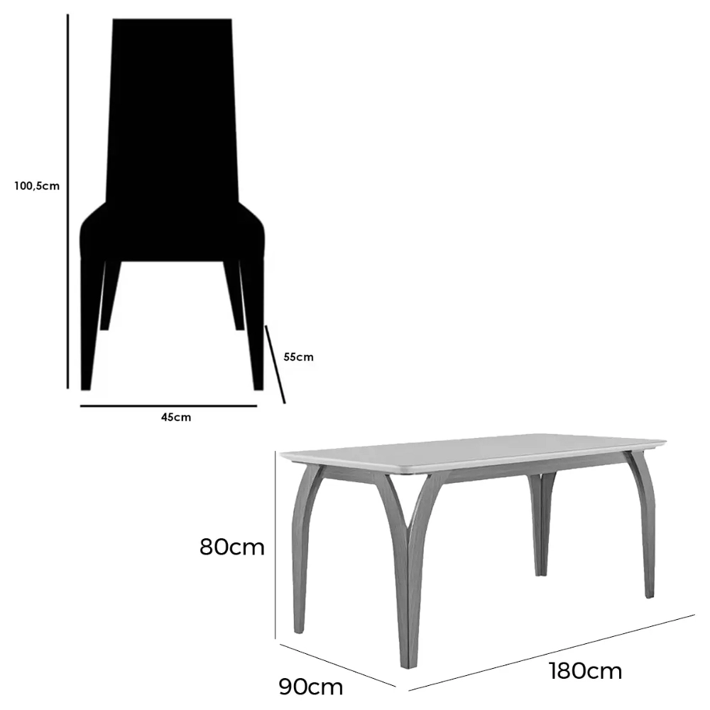 | Modelo | Mesa de Jantar Agata 180x90cm com Vidro e 6 Cadeiras California em Veludo |
