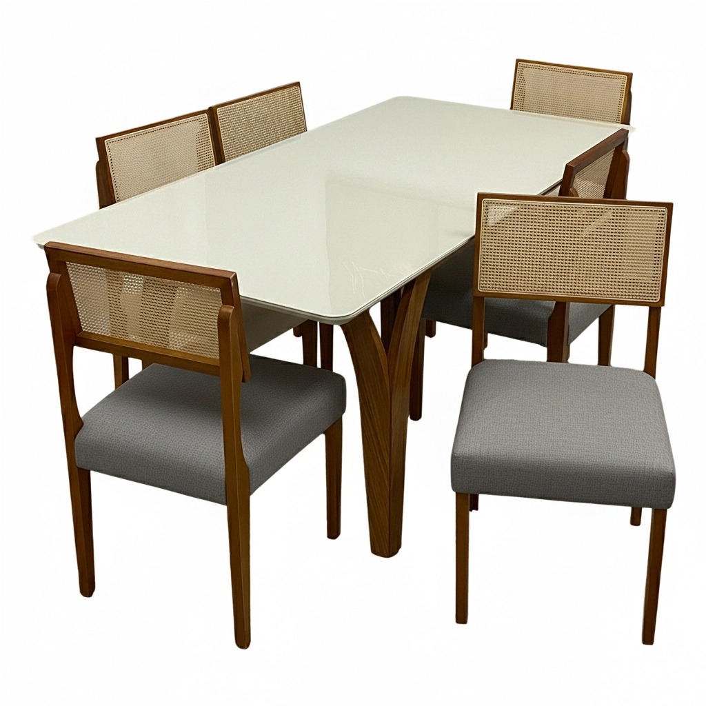 | Modelo | Mesa de Jantar Agata 180x90cm com Vidro e 6 Cadeiras Grecia em Linho |