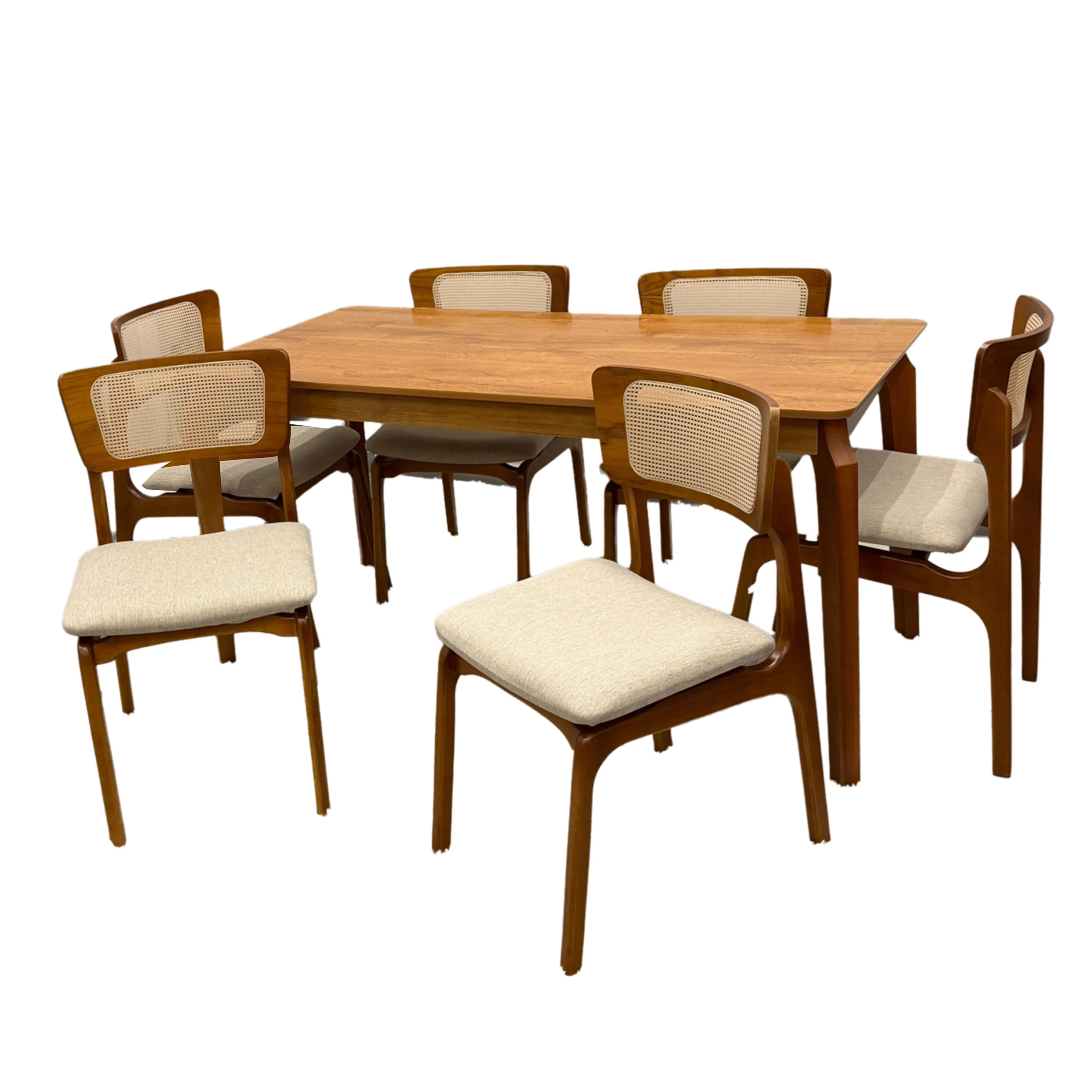Mesa de Jantar Alegra 160x80cm sem Vidro e 6 Cadeiras New Viena em Linho Madeira JCM