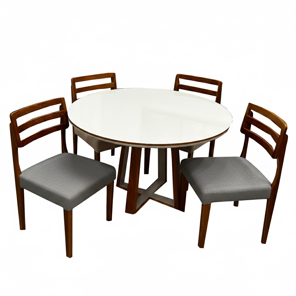 A Mesa de Jantar Atlanta 100cm Redonda com Vidro e 4 Cadeiras Turquia em Linho Madeira Minas Plac combina sofisticação e funcionalidade, apresentando um tampo redondo de com vidro que amplia e ilumina o ambiente. O conjunto acompanha 4 cadeiras Turquia, que oferecem alto conforto com estofamento em tecido linho de toque agradável e design ergonômico. Fabricado pela Minas Plac, o conjunto utiliza madeira de alta qualidade, garantindo durabilidade e estabilidade para o uso diário. Seu estilo contemporâneo adapta-se perfeitamente a salas de jantar ou cozinhas compactas, unindo a beleza da madeira com a modernidade do vidro. É a escolha ideal para quem busca um móvel elegante, resistente e capaz de proporcionar momentos memoráveis em família.