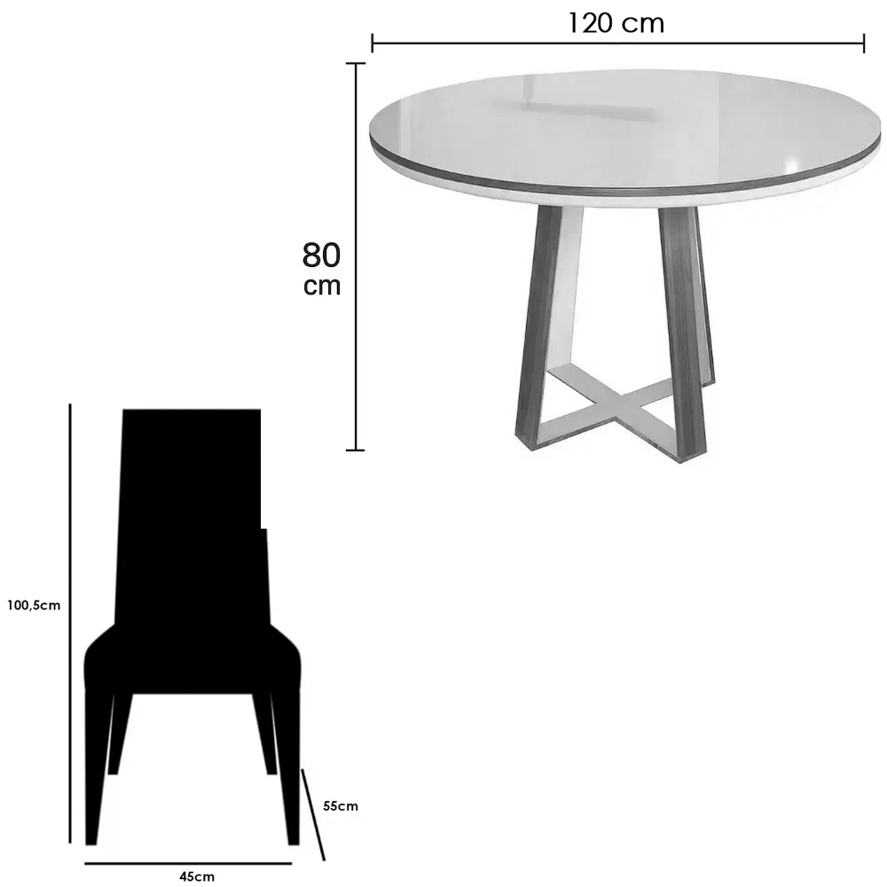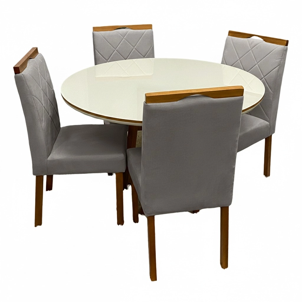 | Modelo | Mesa de Jantar Atlanta 120cm Redonda com Vidro e 4 Cadeiras California em Linho |