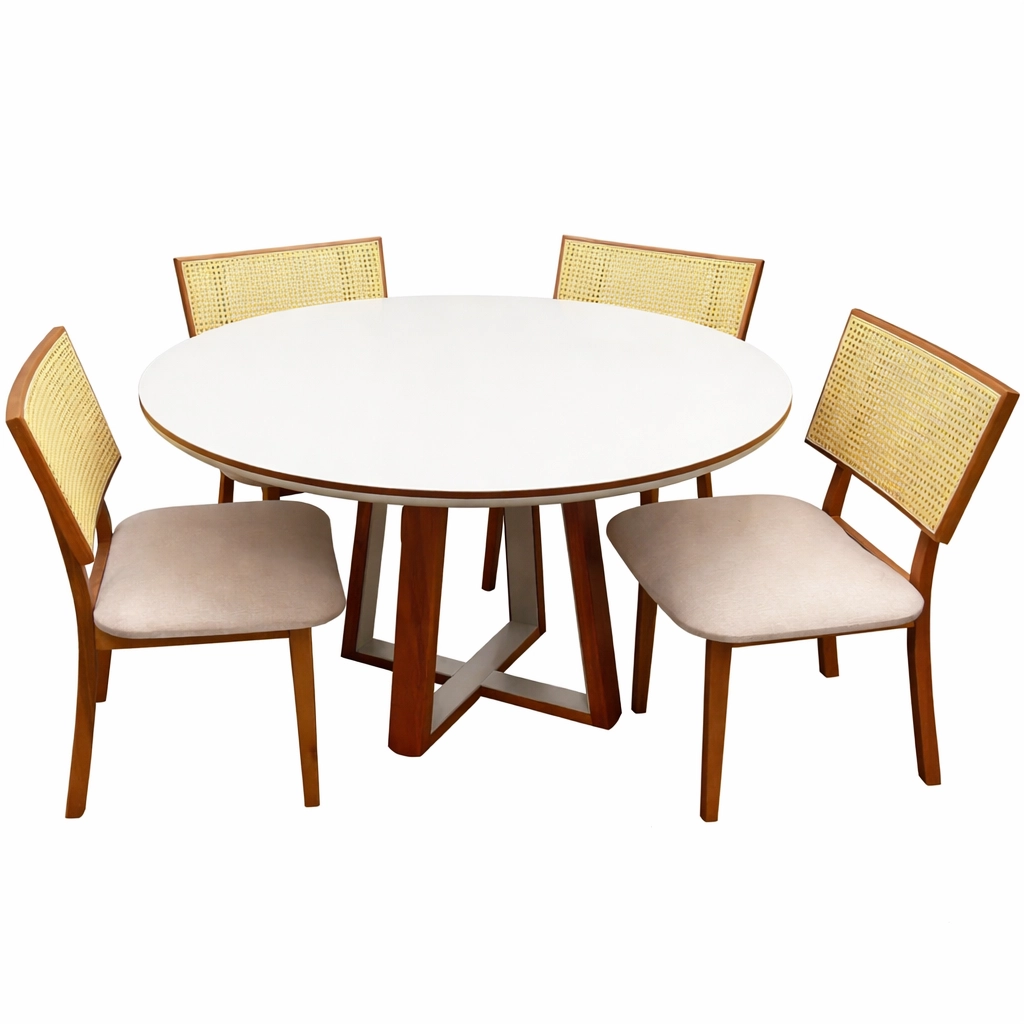 A Mesa de Jantar Atlanta 120cm Redonda com Vidro e 4 Cadeiras Diamante em Linho Madeira Minas Plac combina sofisticação e funcionalidade, apresentando um tampo redondo de com vidro que amplia e ilumina o ambiente. O conjunto acompanha 4 cadeiras Diamante, que oferecem alto conforto com estofamento em tecido linho de toque agradável e design ergonômico. Fabricado pela Minas Plac, o conjunto utiliza madeira de alta qualidade, garantindo durabilidade e estabilidade para o uso diário. Seu estilo contemporâneo adapta-se perfeitamente a salas de jantar ou cozinhas compactas, unindo a beleza da madeira com a modernidade do vidro. É a escolha ideal para quem busca um móvel elegante, resistente e capaz de proporcionar momentos memoráveis em família.