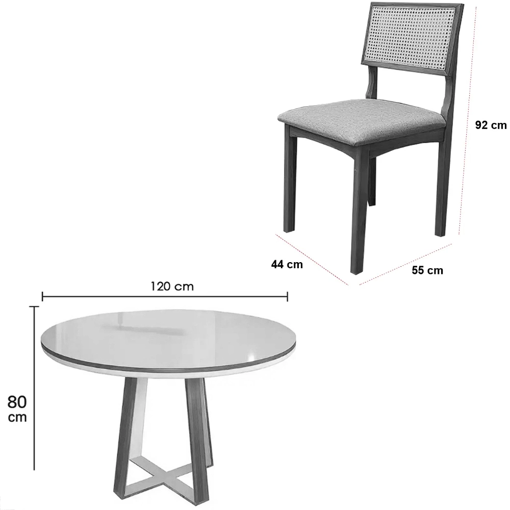 | Modelo | Mesa de Jantar Atlanta 120cm Redonda com Vidro e 4 Cadeiras Monalisa em Linho |
