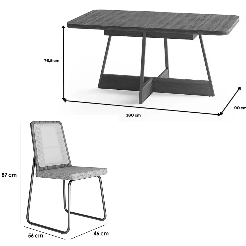 Mesa de Jantar Atria 160x90cm com 6 Cadeiras Wood 1751 em Aço e Mdf Tecido Linho Carraro