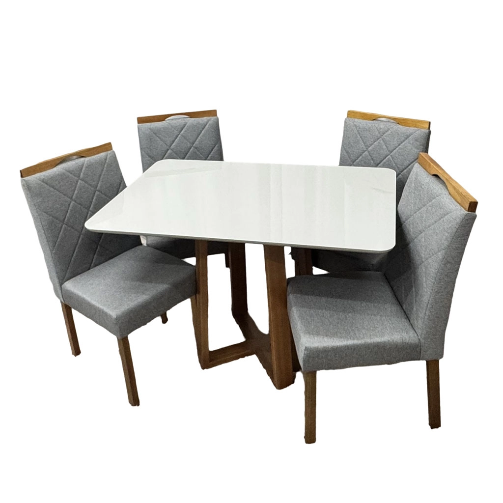 | Modelo | Mesa de Jantar Bali 120x90cm com Vidro e 4 Cadeiras California em Linho Estofadas Minas Plac |