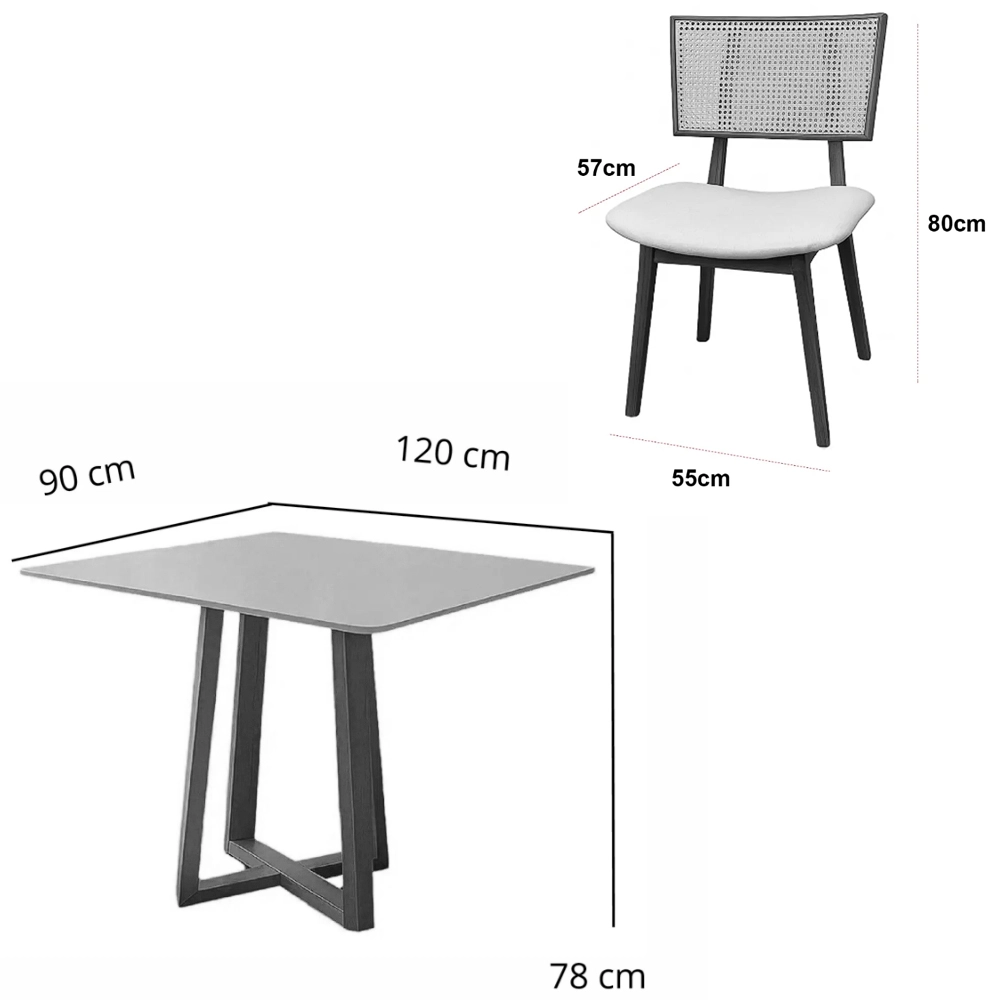 | Modelo | Mesa de Jantar Bali 120x90cm com Vidro e 4 Cadeiras Livia em Linho |