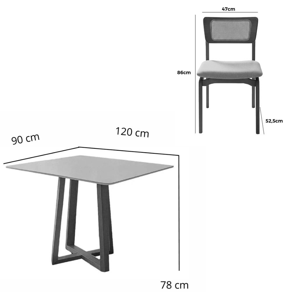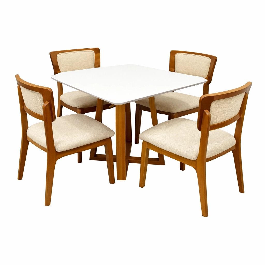 | Modelo | Mesa de Jantar Bali 120x90cm com Vidro e 4 Cadeiras New Viena em Linho |