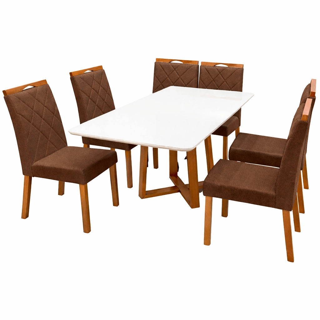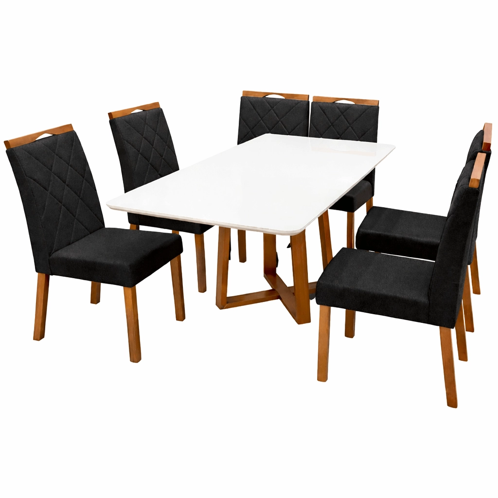 Mesa de Jantar Bali 160x90cm com Vidro e 6 Cadeiras California em Veludo Estofadas Minas Plac