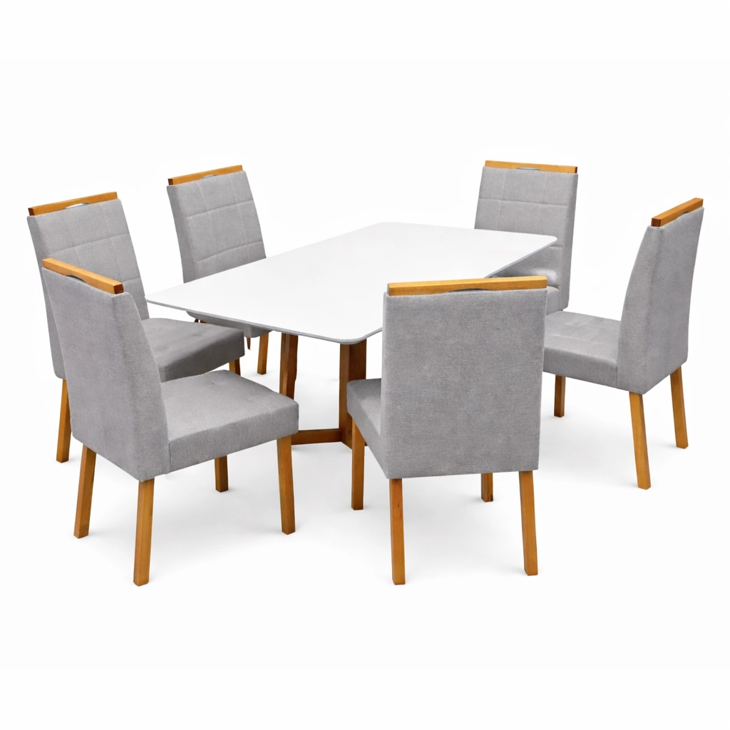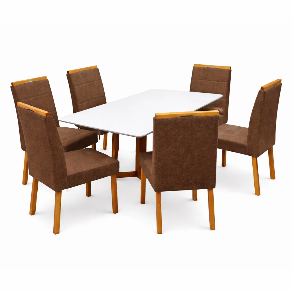 | Modelo | Mesa de Jantar Bali 160x90cm com Vidro e 6 Cadeiras Giulia em Veludo Estofadas Minas Plac |