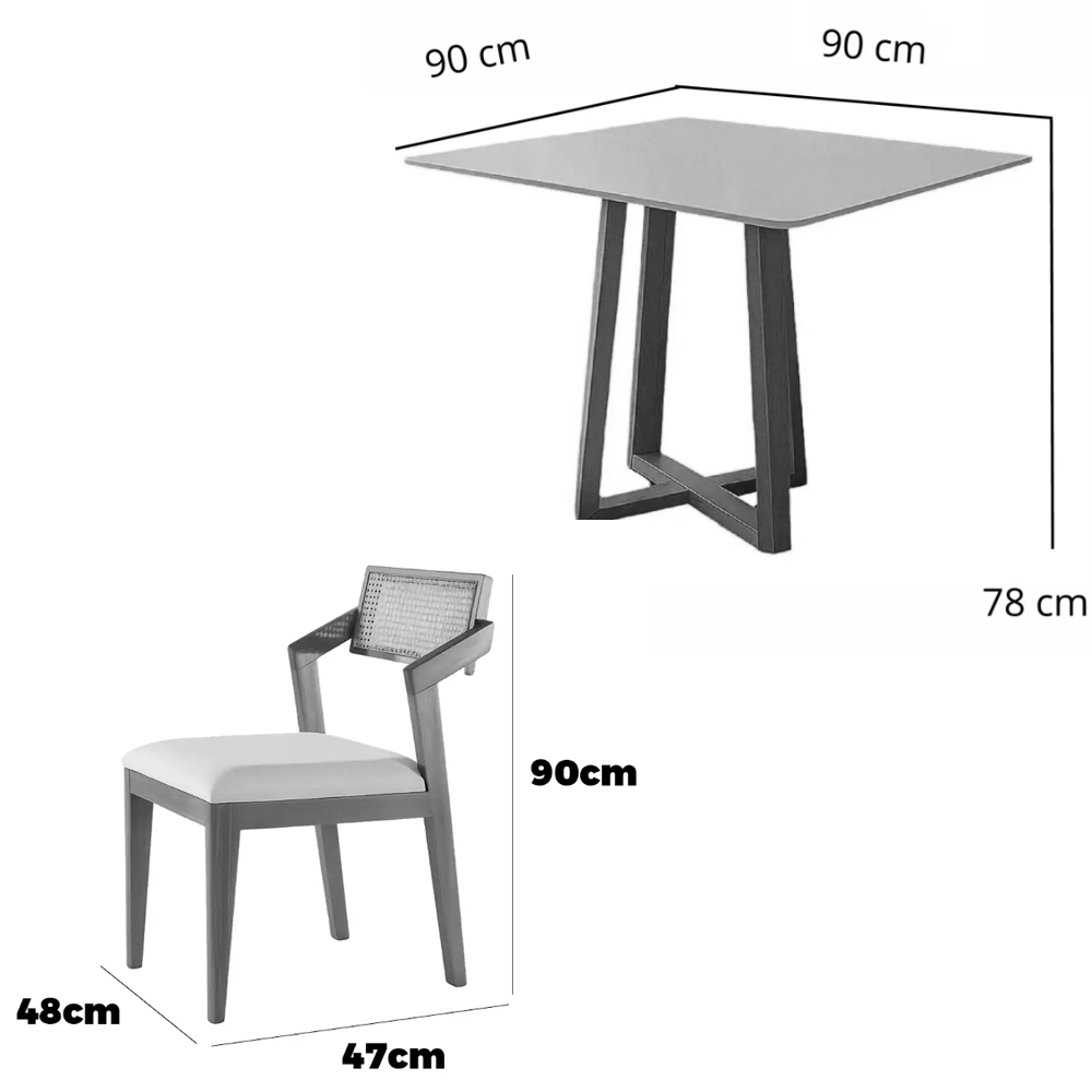 Mesa de Jantar Bali 90x90cm com Vidro e 4 Cadeiras Berlim HR em Linho Madeira Minas Plac