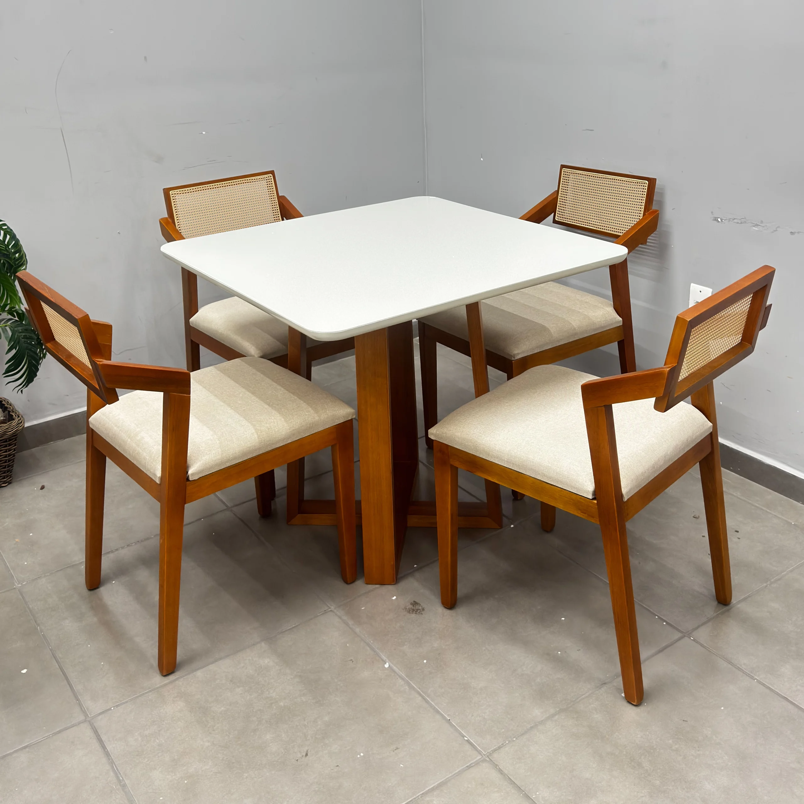 Seja o primeiro a avaliar “Mesa de Jantar Bali 90x90cm com Vidro e 4 Cadeiras Berlim Hr em Linho Madeira Minas Plac”