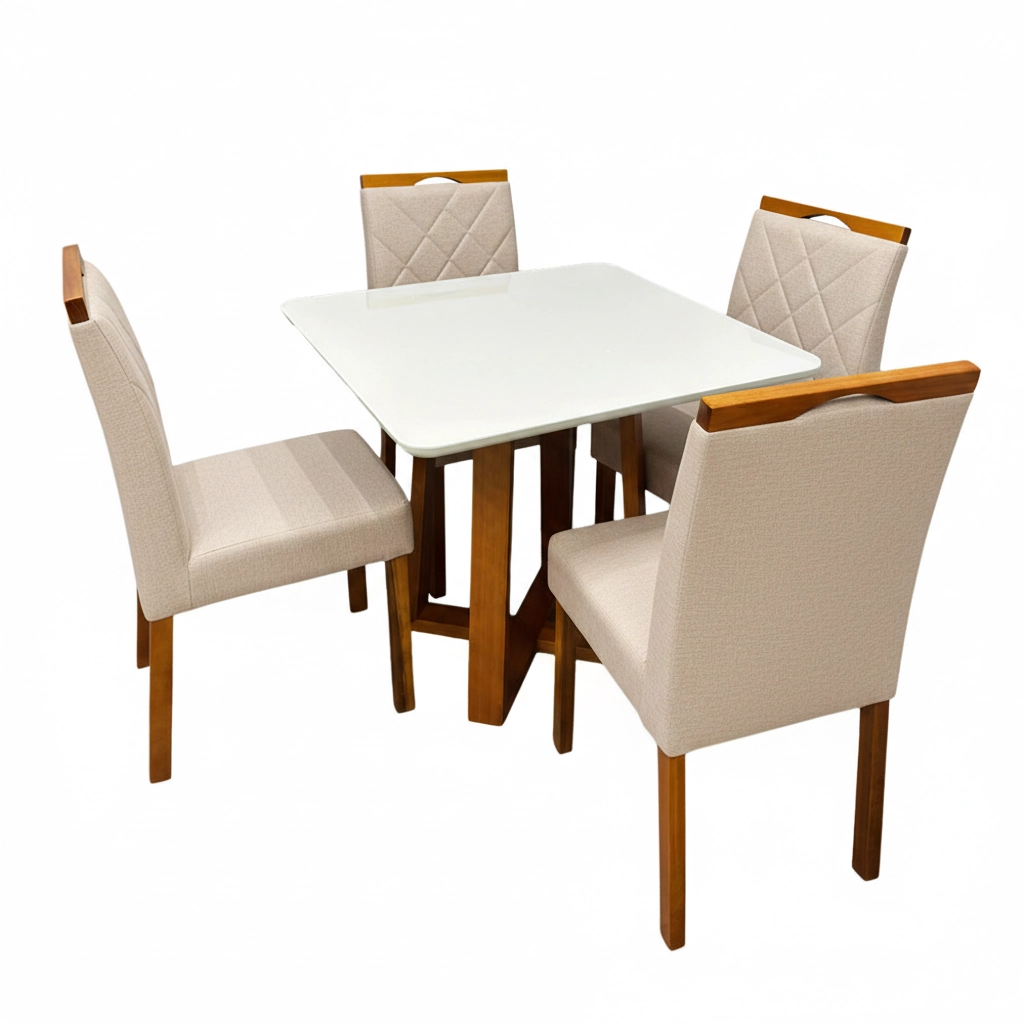 Mesa de Jantar Bali 90x90cm com Vidro e 4 Cadeiras California em Linho Estofadas Minas Plac