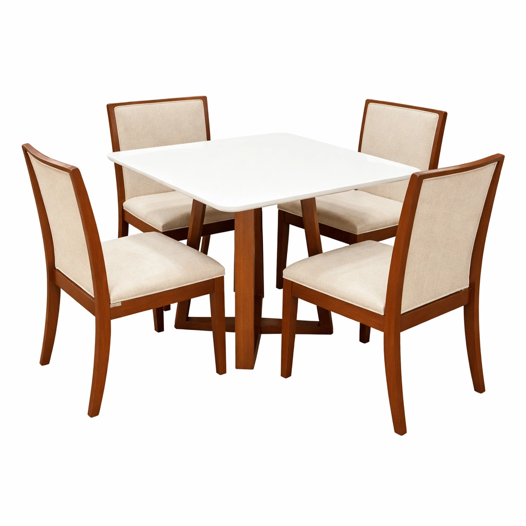 | Modelo | Mesa de Jantar Bali 90x90cm com Vidro e 4 Cadeiras Lara Kappesberg em Linho |