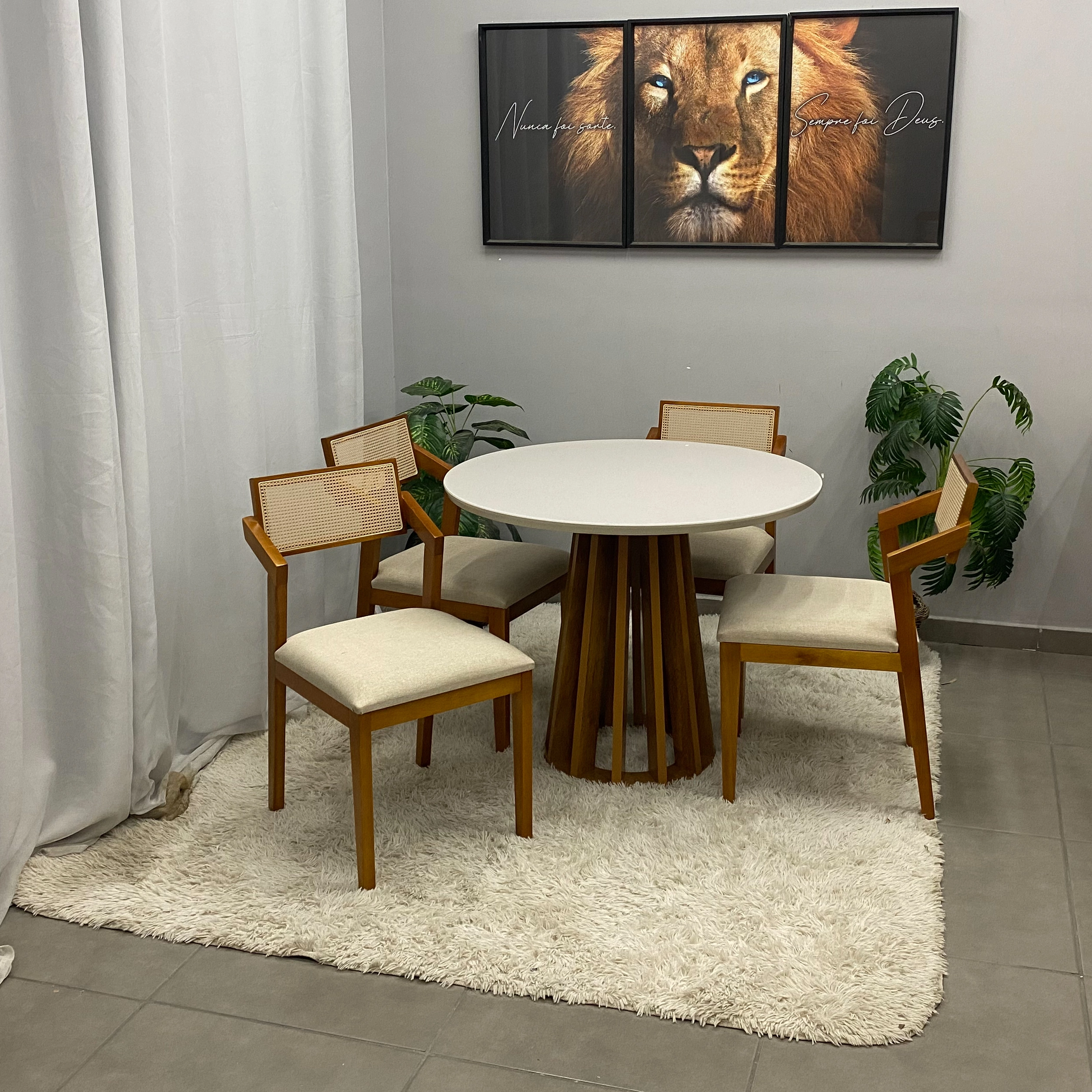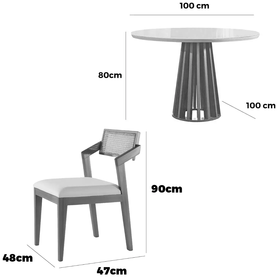 | Modelo | Mesa de Jantar Berlim 100cm Redonda com Vidro e 4 Cadeiras Berlim HR em Linho |