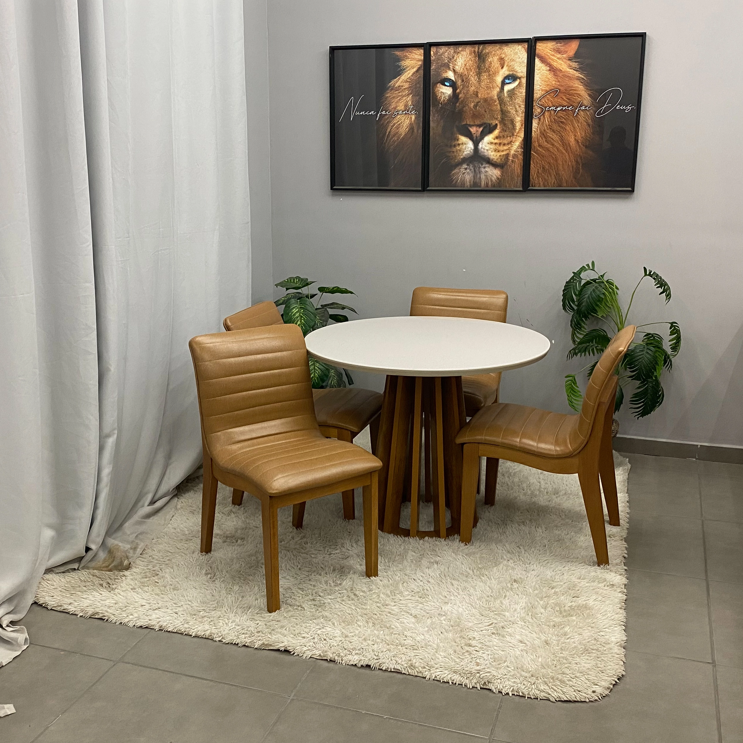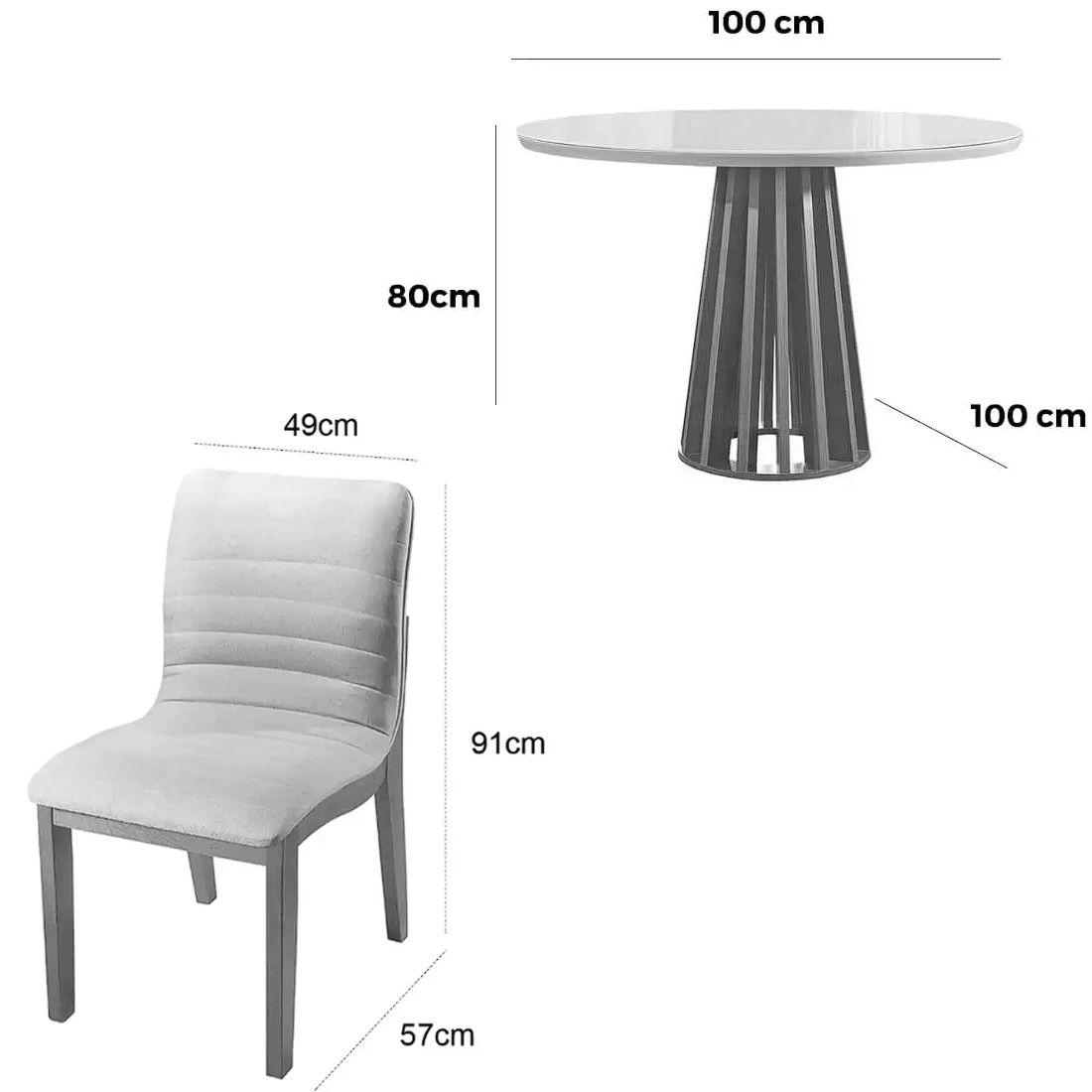| Modelo | Mesa de Jantar Berlim 100cm Redonda com Vidro e 4 Cadeiras Sofia em Corino |