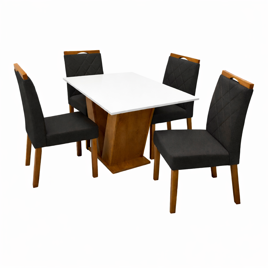 O conjunto acompanha 4 cadeiras, projetadas para proporcionar uma experiência de máximo conforto. Combinando robustez e sofisticação, este conjunto apresenta um acabamento refinado que harmoniza com diversos estilos de decoração, do clássico ao contemporâneo. É a peça central que faltava para renovar seu ambiente com qualidade superior e um visual impecável que impressiona as visitas.