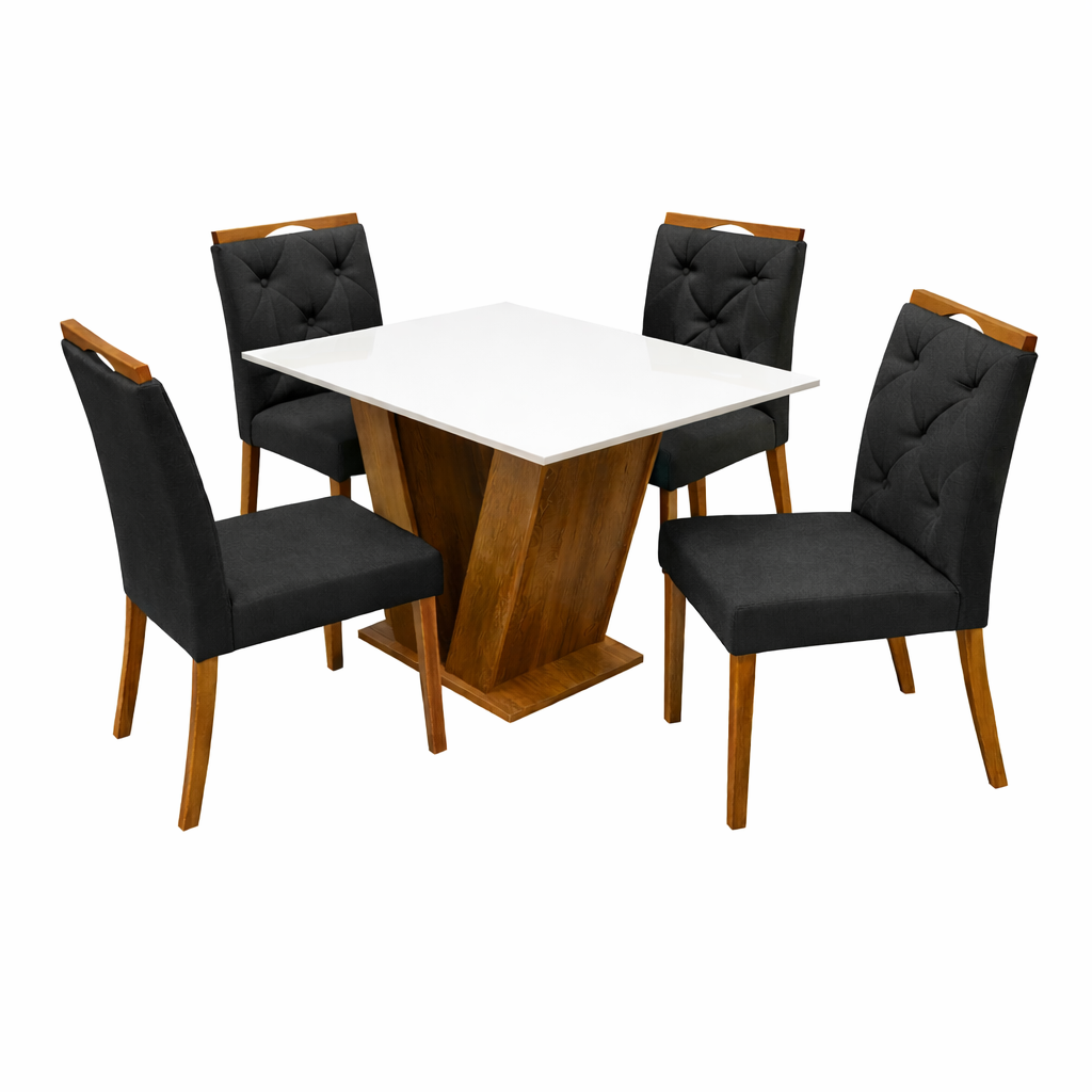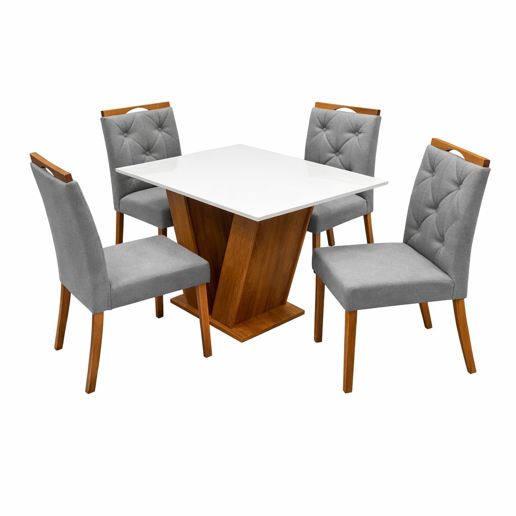 O conjunto acompanha 4 cadeiras, projetadas para proporcionar uma experiência de máximo conforto. Combinando robustez e sofisticação, este conjunto apresenta um acabamento refinado que harmoniza com diversos estilos de decoração, do clássico ao contemporâneo. É a peça central que faltava para renovar seu ambiente com qualidade superior e um visual impecável que impressiona as visitas.