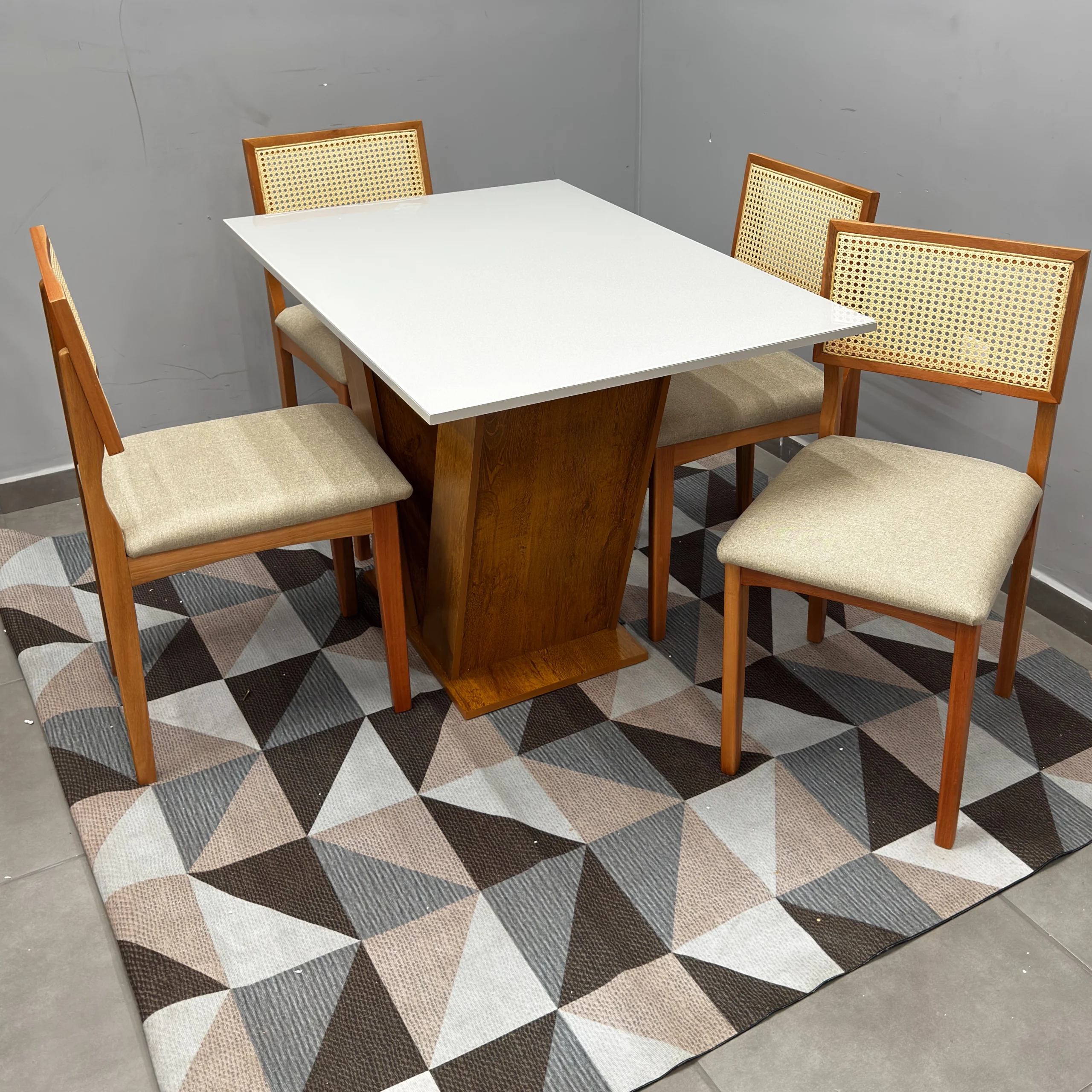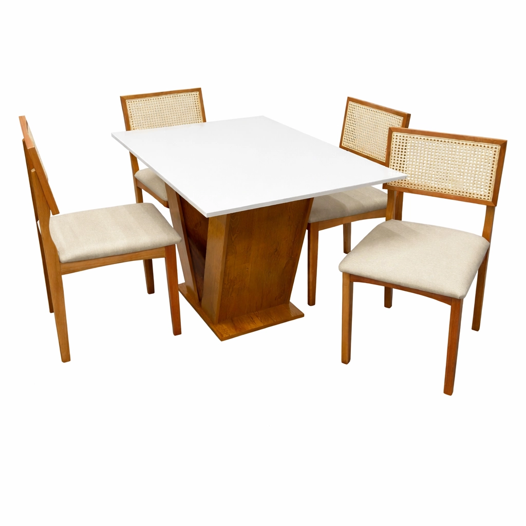 O conjunto acompanha 4 cadeiras, projetadas para proporcionar uma experiência de máximo conforto. Combinando robustez e sofisticação, este conjunto apresenta um acabamento refinado que harmoniza com diversos estilos de decoração, do clássico ao contemporâneo. É a peça central que faltava para renovar seu ambiente com qualidade superior e um visual impecável que impressiona as visitas.