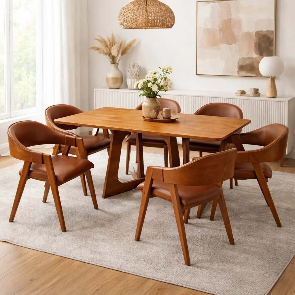 A Mesa de Jantar Dubai Flex 160x80cm SEM Vidro e 6 Cadeiras Perola em Corino Madeira Cel Móveis combina praticidade e elegância para otimizar seu ambiente com um toque moderno. Com um tampo amadeirado resistente, ela é acompanhada por 6 cadeiras, que garantem o máximo conforto. É o conjunto ideal para quem busca durabilidade e um design sofisticado para reunir a família.