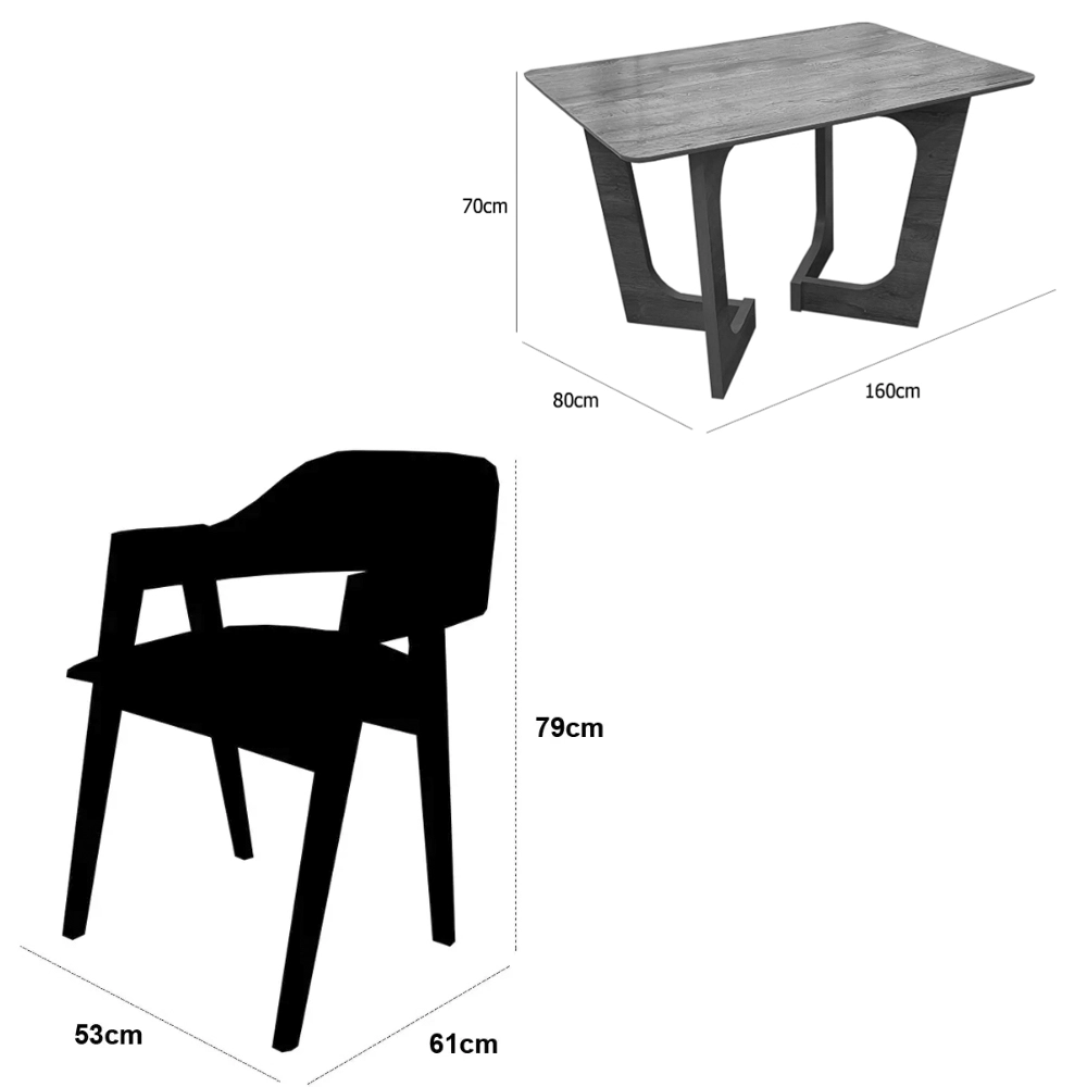| Modelo | Mesa de Jantar Dubai Flex 160x80cm Sem Vidro e 6 Cadeiras Perola em Corino |