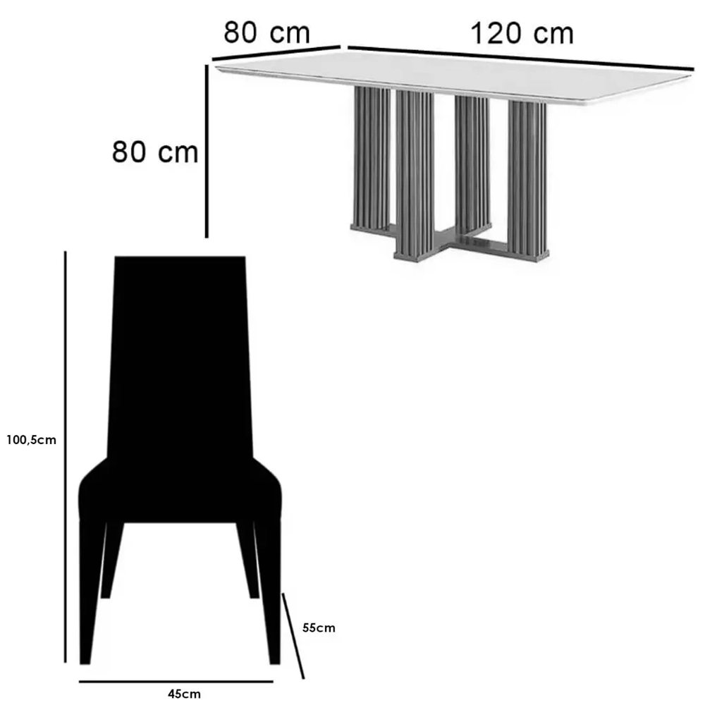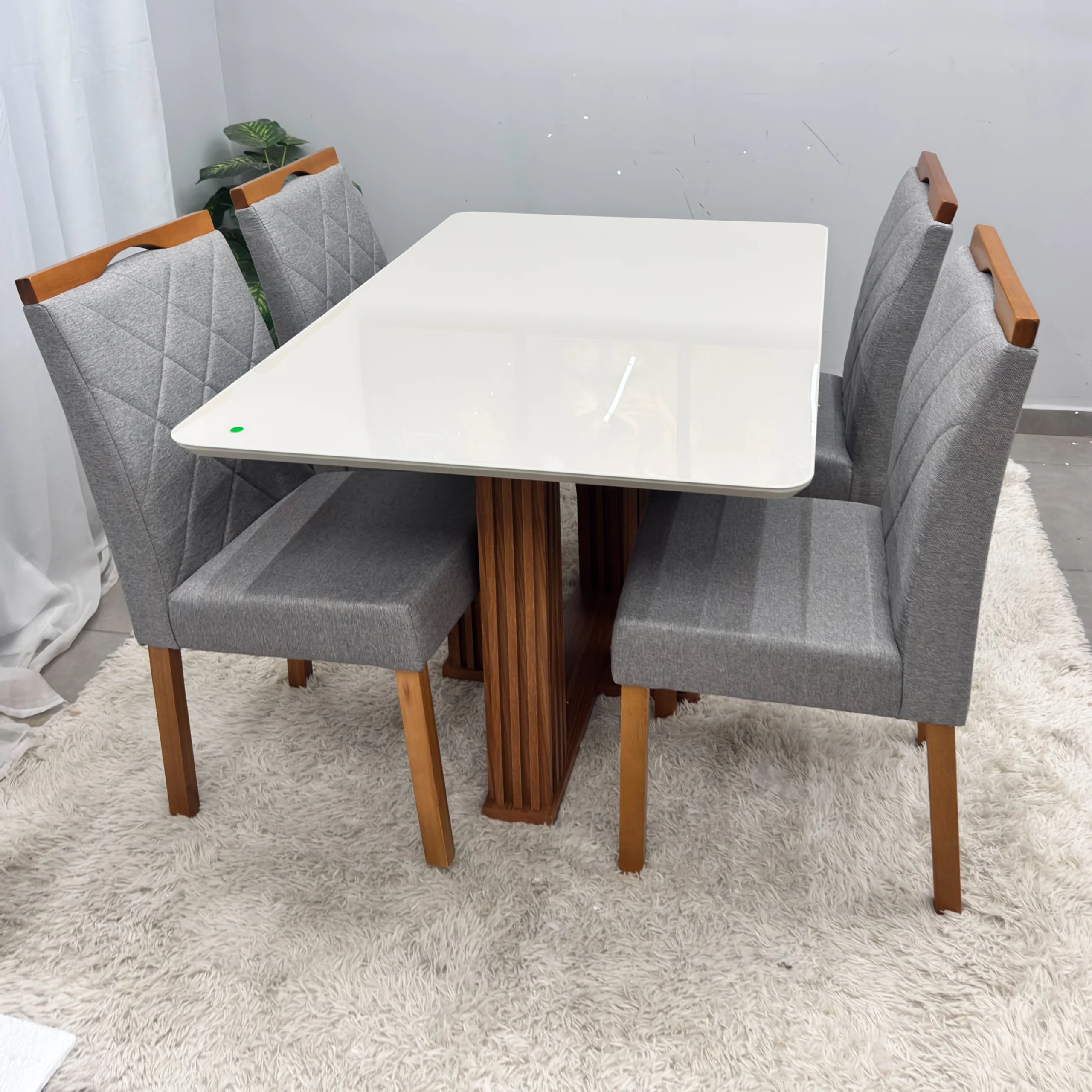 | Modelo | Mesa de Jantar Florença 120x80cm com Vidro e 4 Cadeiras California em Linho |