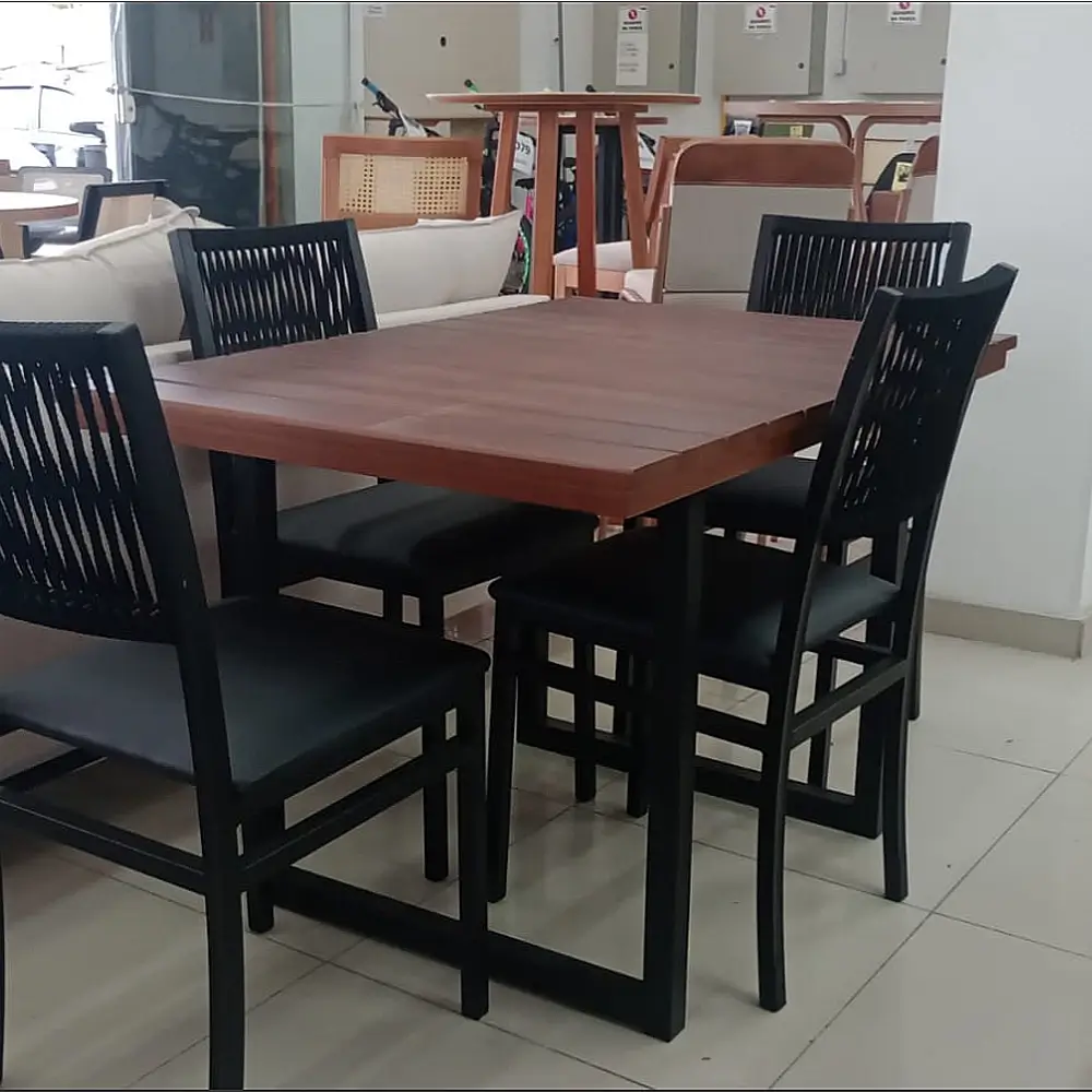 Estrutura Mesa Tampo de madeira maciça de Eucalipto com acabamento ripado, Base em Metalon Preto