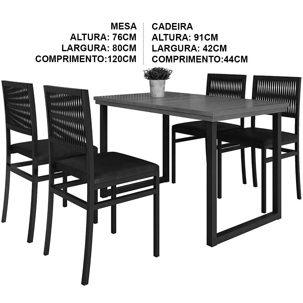Mesa de Jantar Italia 120x80cm com 4 Cadeiras Barcelona Paonanda