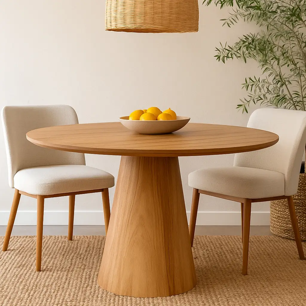 A Mesa Paris Redonda 120×120 Minas Placé a essência do design elegante e funcional. Seu formato circular promove a união e a conversa, transformando cada refeição em um encontro íntimo. O tampo, com acabamento impecável, reflete a luz, ampliando a sensação de espaço e leveza no ambiente. Ideal para cozinhas, salas de jantar compactas ou espaços gourmet, a Mesa Paris combina perfeitamente com qualquer estilo de decoração. É a escolha perfeita para quem busca sofisticação, praticidade e a beleza atemporal de uma peça pensada para durar.