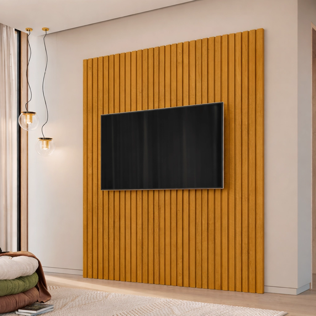 O Painel Roma 180cm SEM Prateleira Ripado Para Tv Até 65 Polegadas Rv Móveis oferece uma solução estética imponente e minimalista para elevar o padrão visual do seu centro de entretenimento. O modelo apresenta um acabamento ripado que adiciona profundidade e sofisticação à parede, criando um cenário perfeito. Sua fabricação robusta assegura total segurança durante a fixação, enquanto a ausência de divisórias externas mantém o foco total na tela, ideal para quem busca uma decoração limpa e moderna.