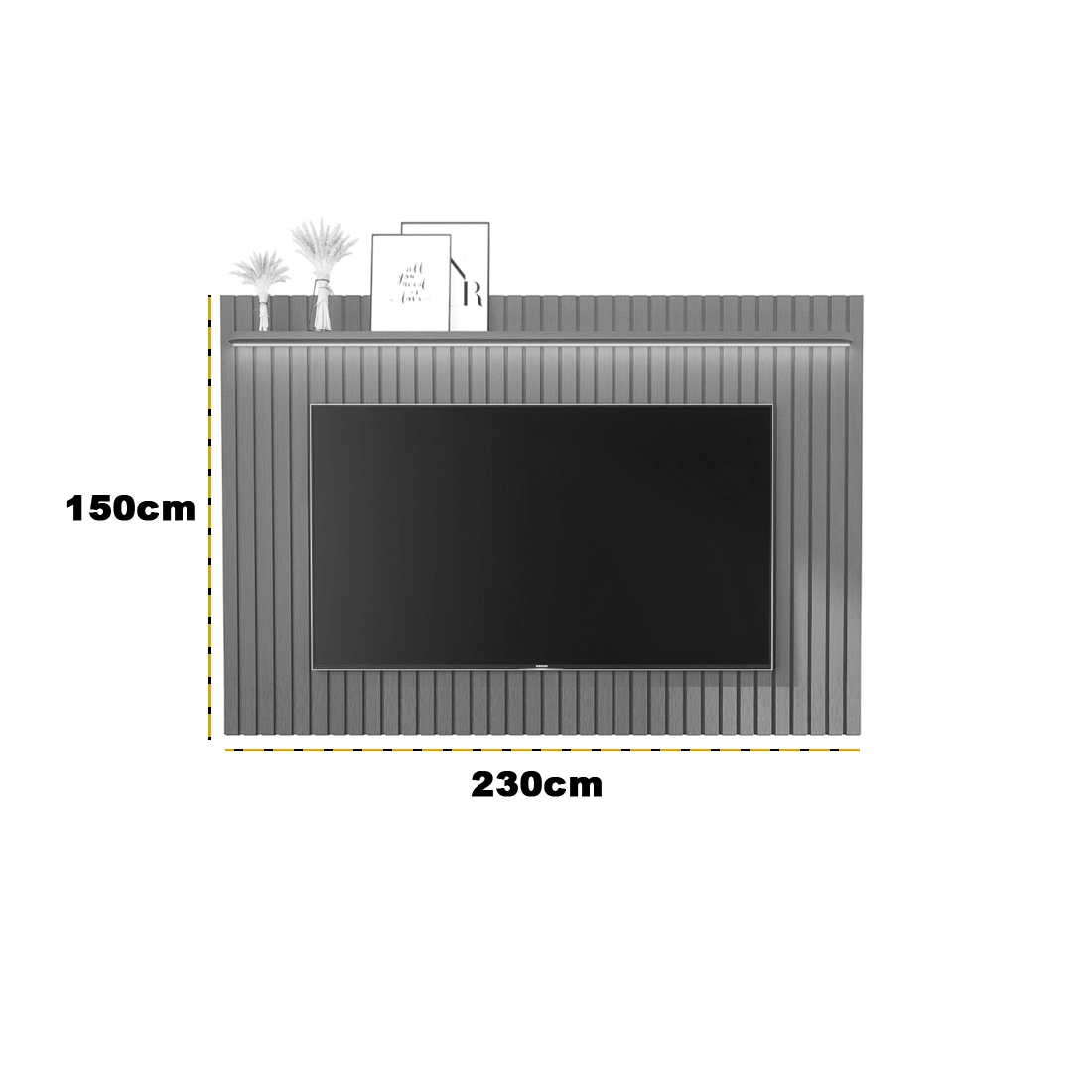 | Modelo | Painel Tucuma Ripado 230cm com Prateleira e Led |