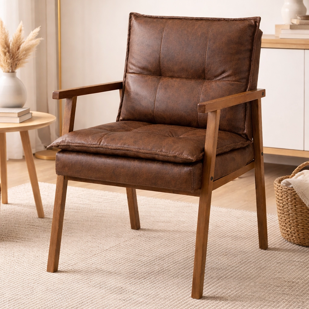 A Poltrona Denise 025 em Courino May Ind é uma peça de destaque que une conforto e estilo com seu design moderno e aconchegante. Revestida em courino, ela proporciona uma elegância sofisticada, elevando a decoração de qualquer ambiente, seja na sala de estar, quarto ou escritório. A estrutura é complementada por pés e braços robustos em madeira que garantem estabilidade e durabilidade, enquanto seu formato ergonômico e o assento macio a tornam o convite perfeito para momentos de relaxamento e leitura.