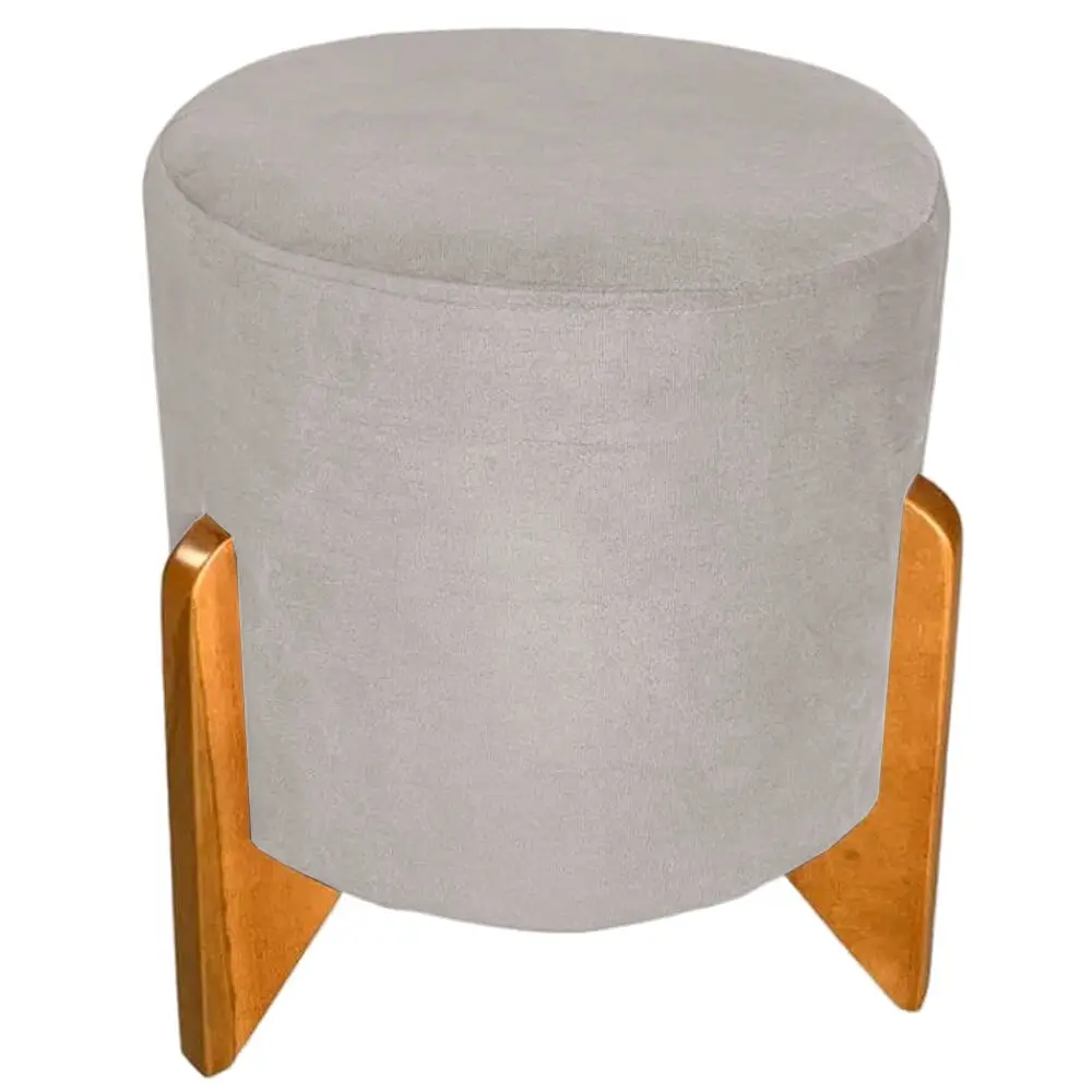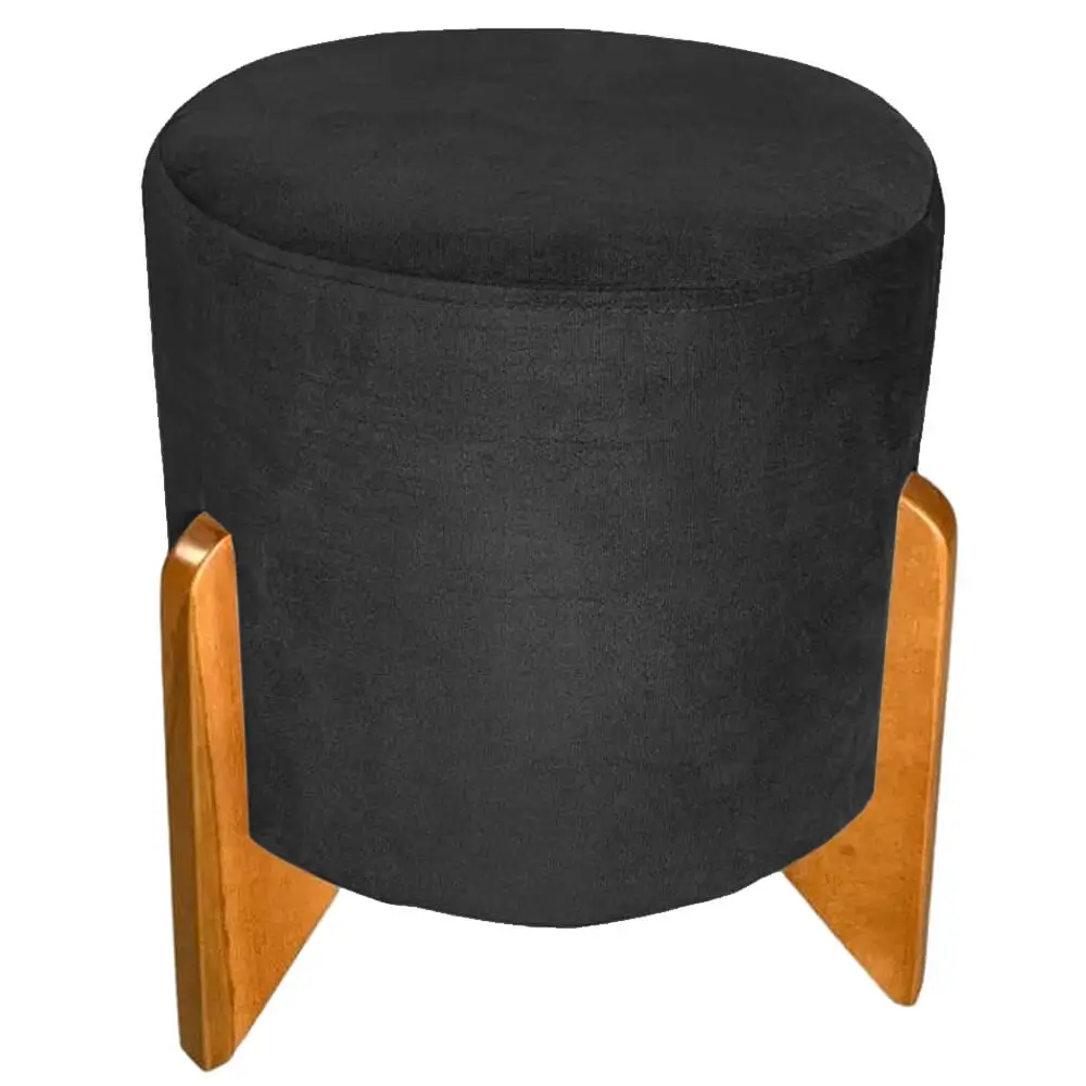Puff Redondo em Veludo com Pés de Madeira Rio Minas