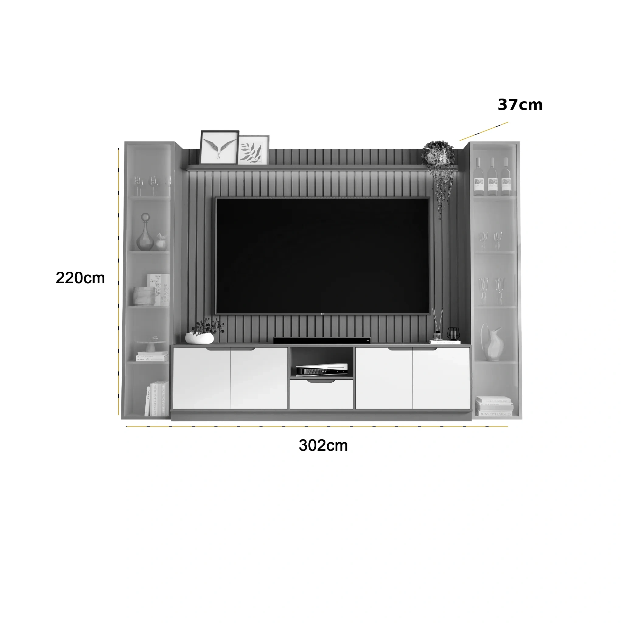 Modelo Rack com Painel Tucuma Ripado 230cm com Prateleira 2 Torres e Led