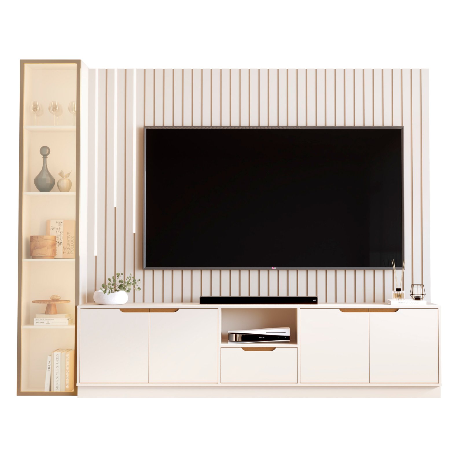 Rack com Painel Tucuma Ripado 230cm sem Prateleira 1 Torre com LED Cascata 5 Portas 1 Gaveta JB Bechara