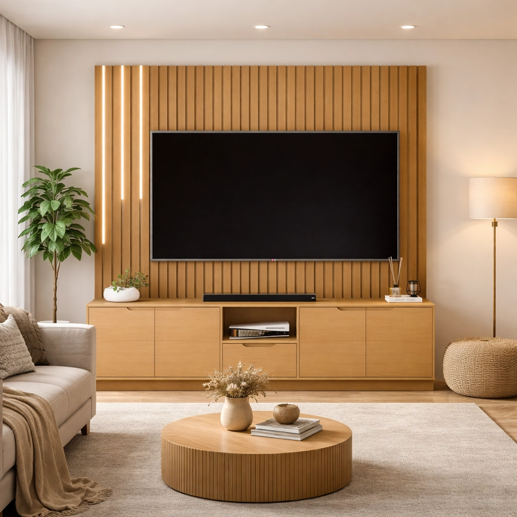 O Rack com Painel Tucuma Ripado 230cm sem Prateleira com LED Cascata 4 Portas 1 Gaveta JB Bechara é a solução definitiva para quem busca unir sofisticação e funcionalidade na organização da sala de estar. Seu design moderno prioriza a otimização do espaço, oferecendo amplos compartimentos internos e superfícies estratégicas que acomodam desde eletrônicos até itens decorativos com total elegância. Fabricado com materiais de alta resistência e acabamento impecável, este móvel transforma o ambiente em um verdadeiro centro de entretenimento, adaptando-se perfeitamente a diferentes estilos de decoração e proporcionando um visual clean e moderno para o seu lar.