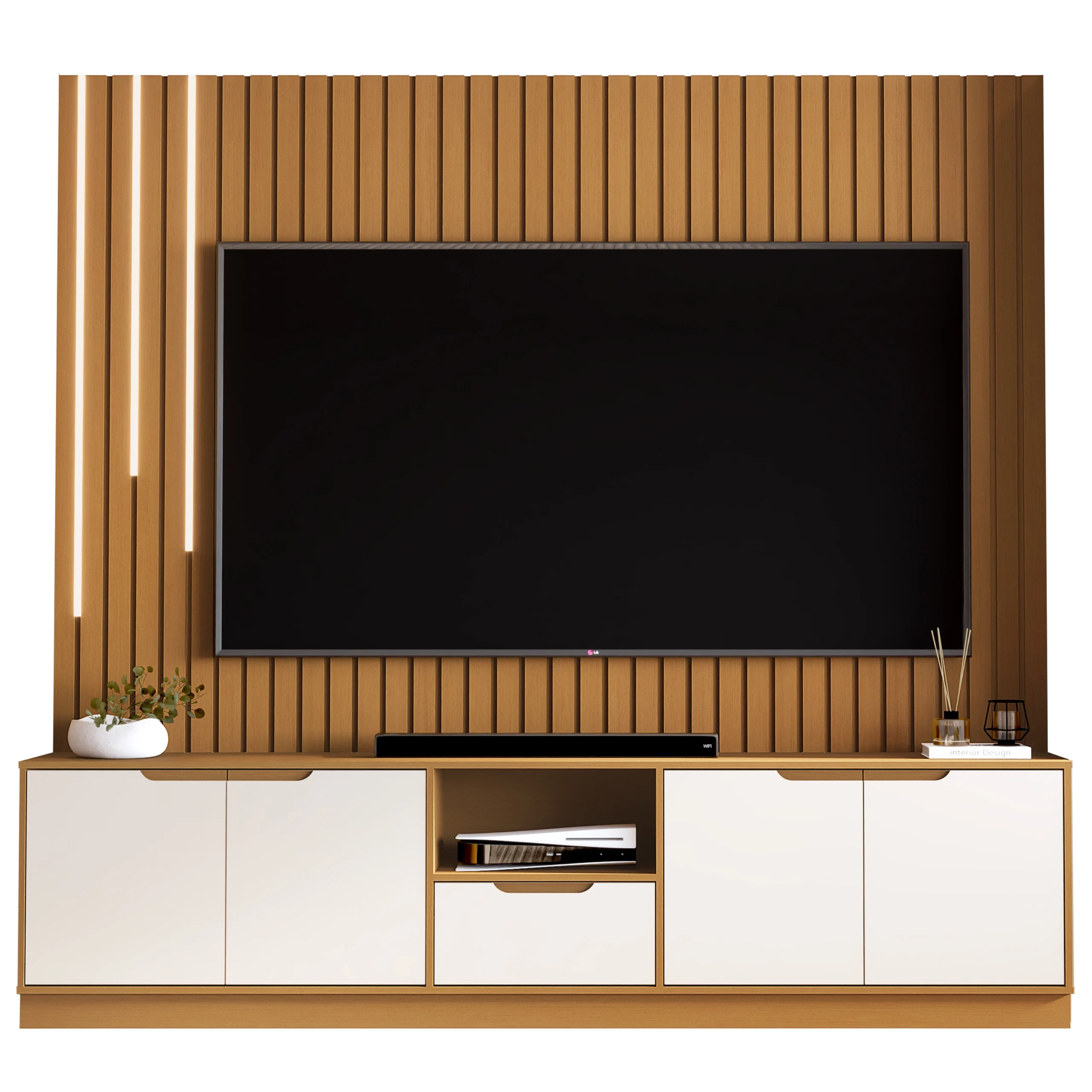 Rack com Painel Tucuma Ripado 230cm sem Prateleira com LED Cascata 4 Portas 1 Gaveta JB Bechara